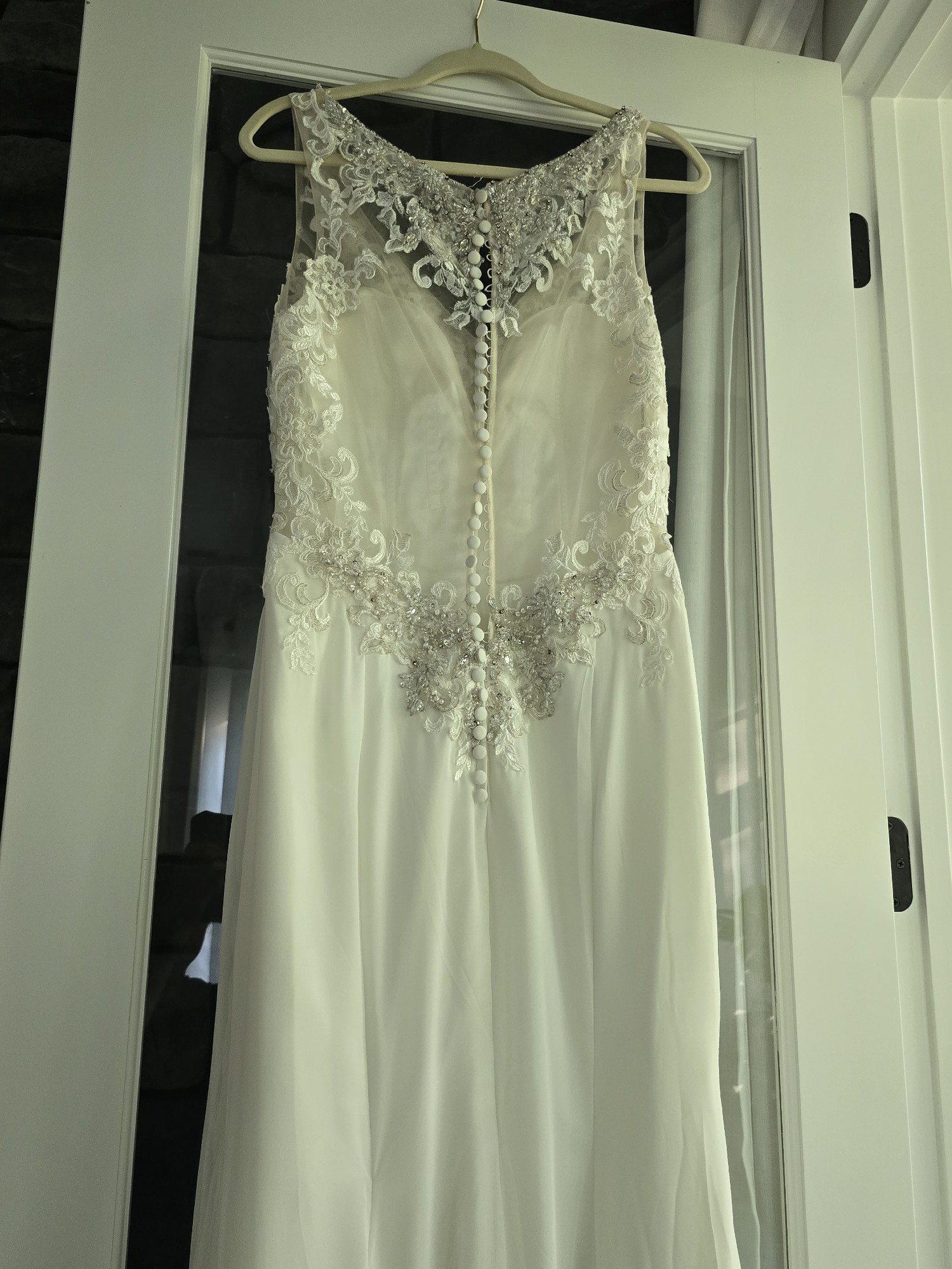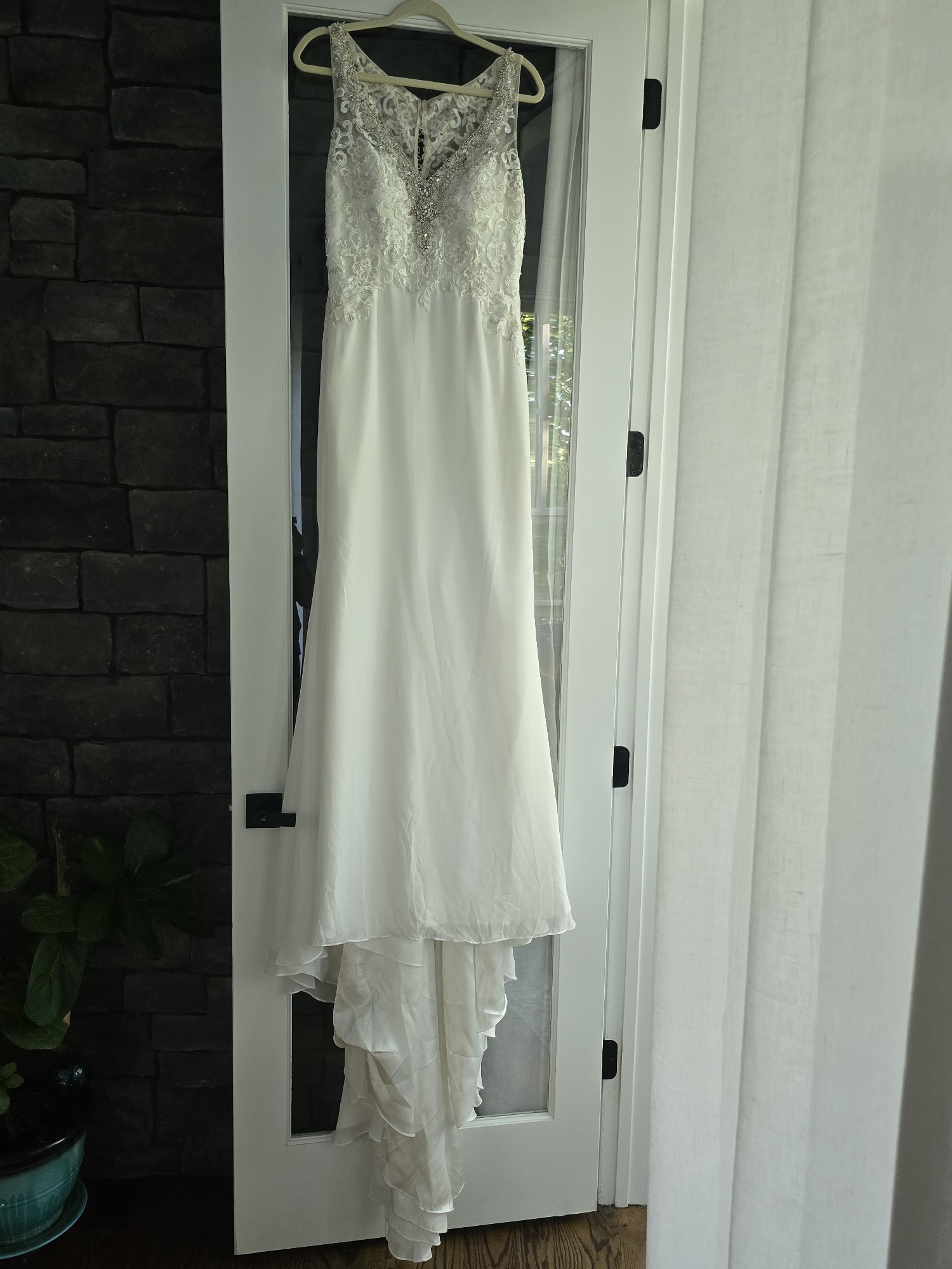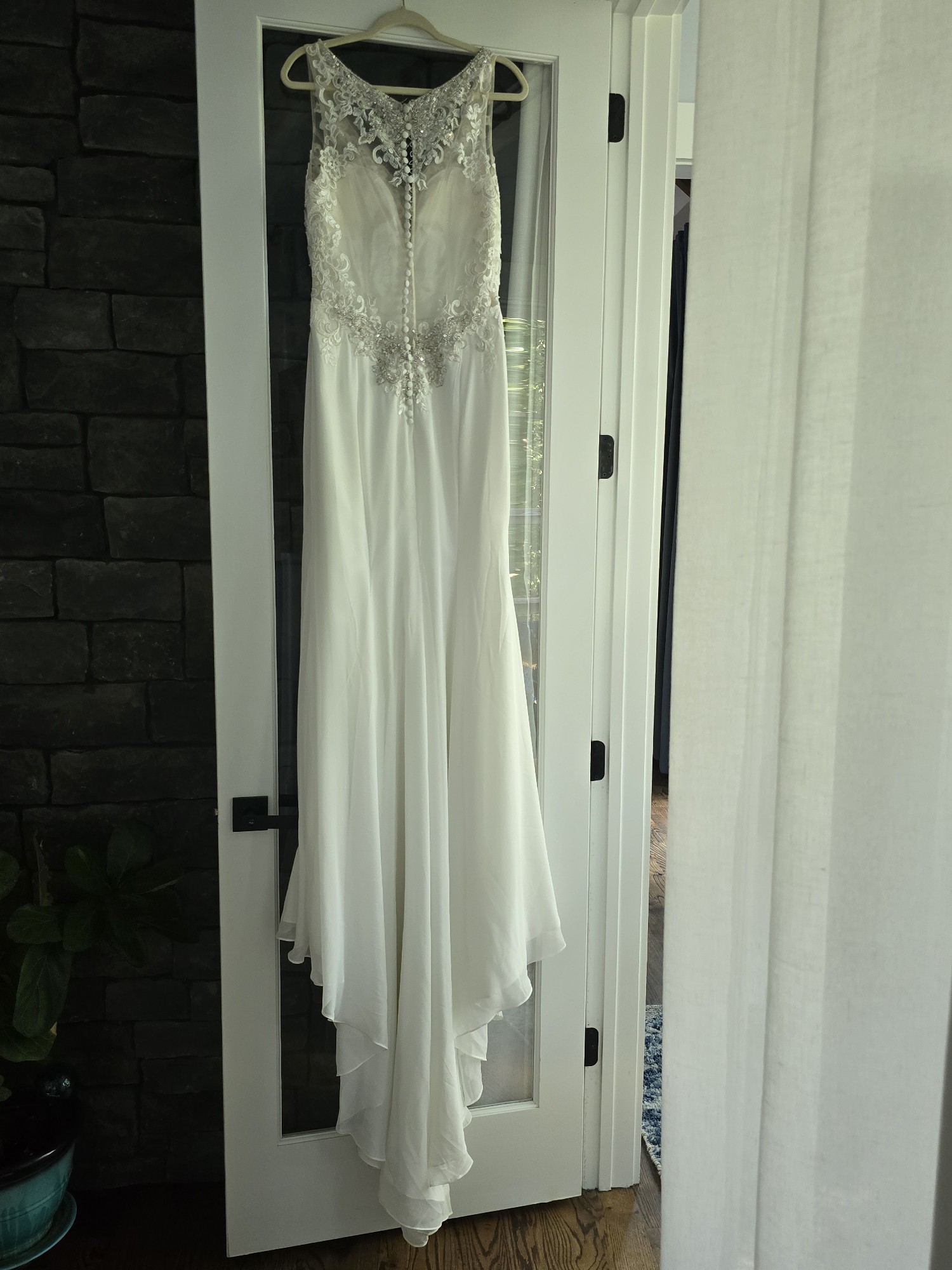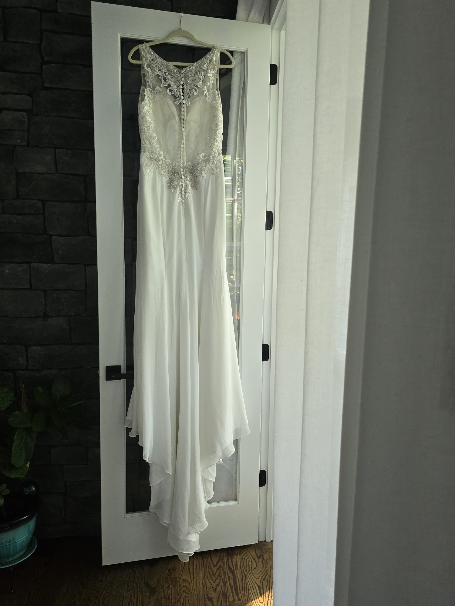 Designed in a size 10, this dress is perfect for the bride who seeks a seamless blend of comfort and style. With each step you take, you'll feel like the star of your own love story, making memories for a lifetime. Don’t miss the opportunity to make your wedding day unforgettable in this exquisite Natali Bridal masterpiece.