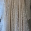 Style: Long sleeve illusion tulle with shimmering embellishments, deep V-neck, and flowing train