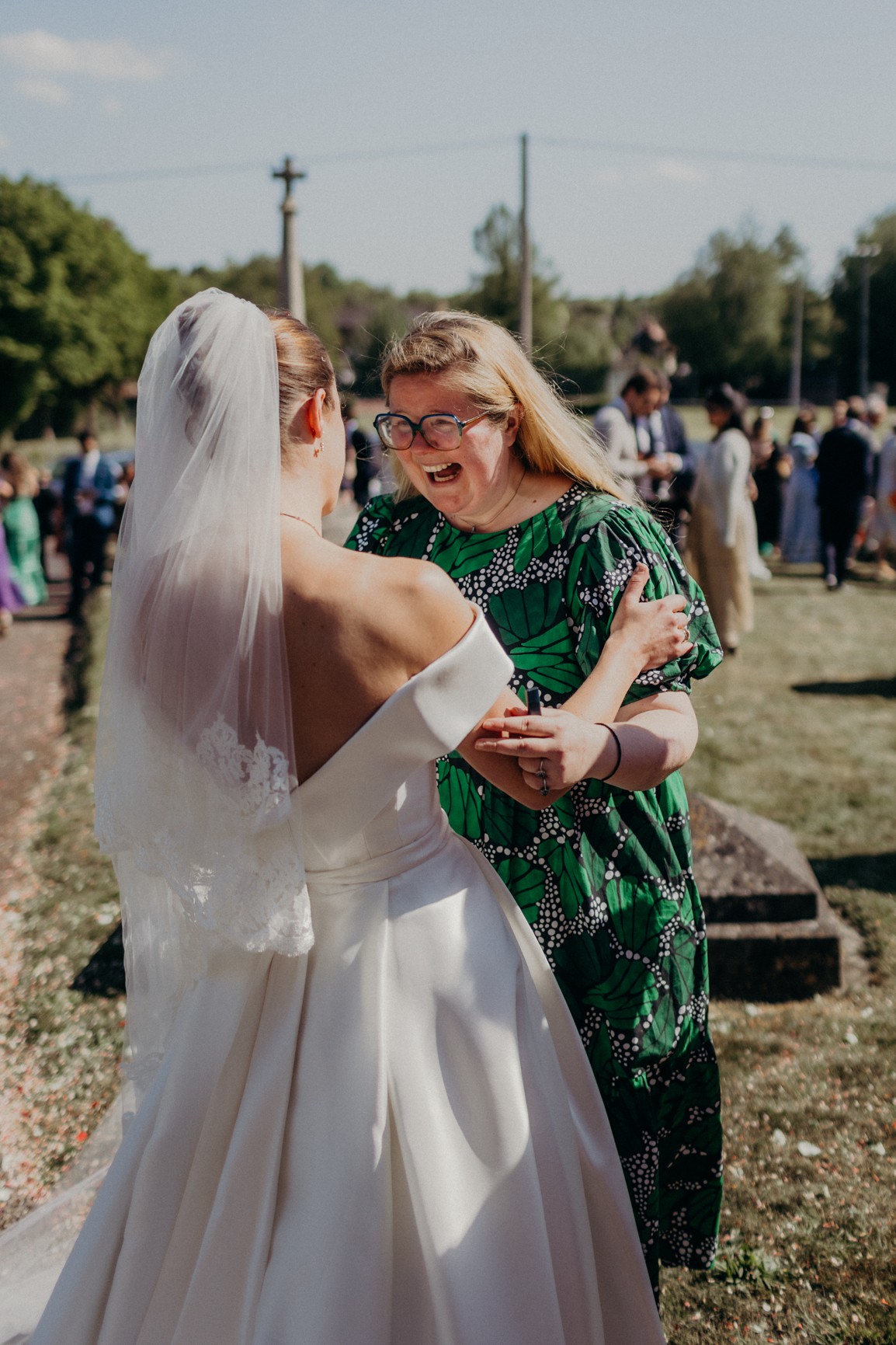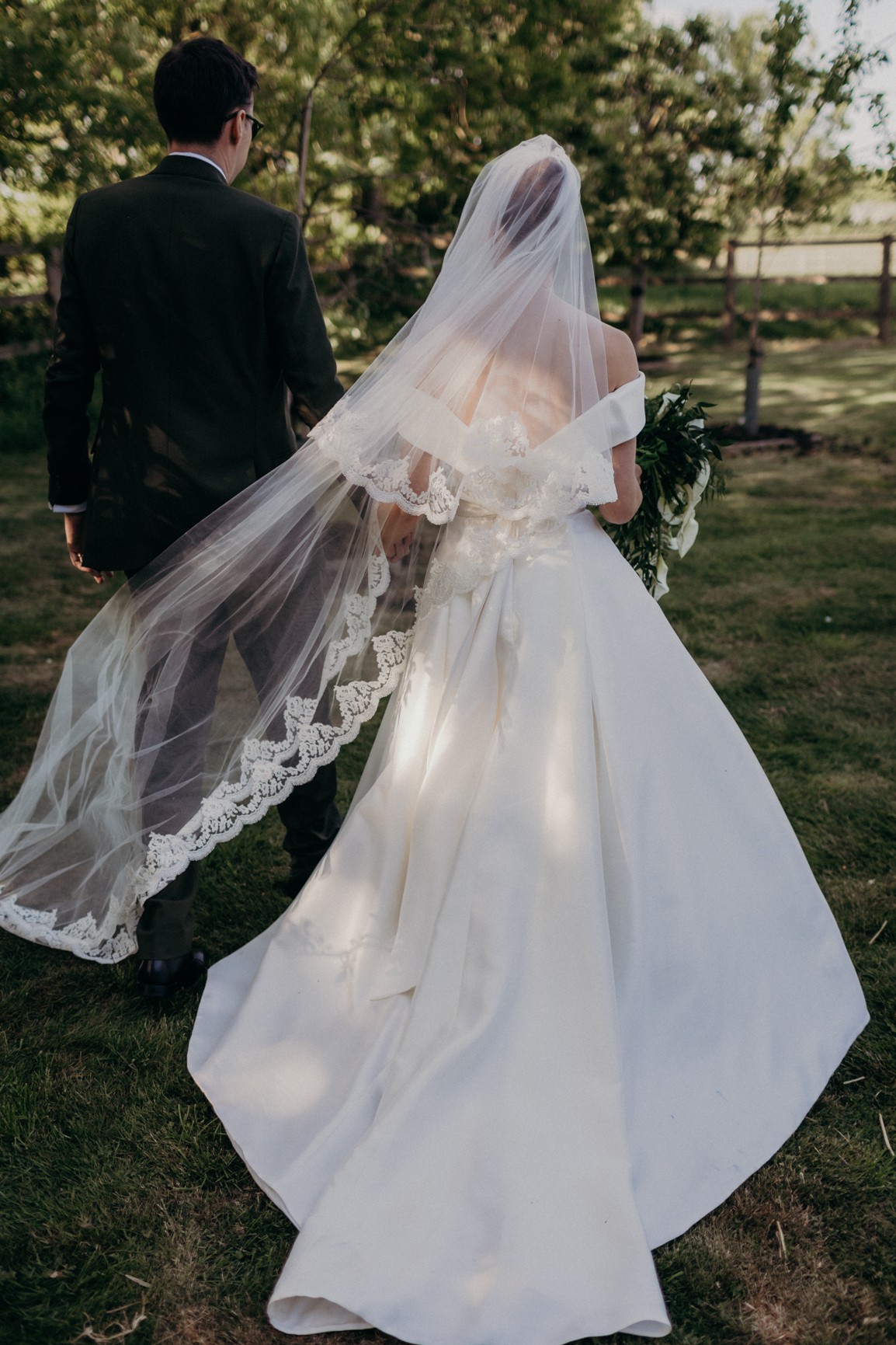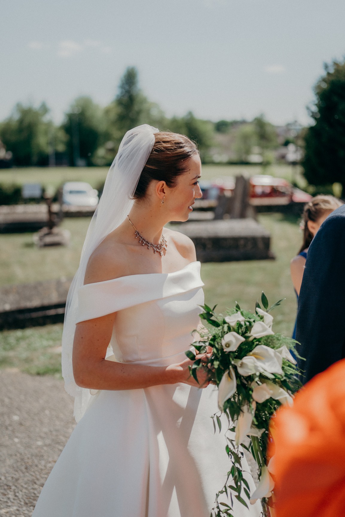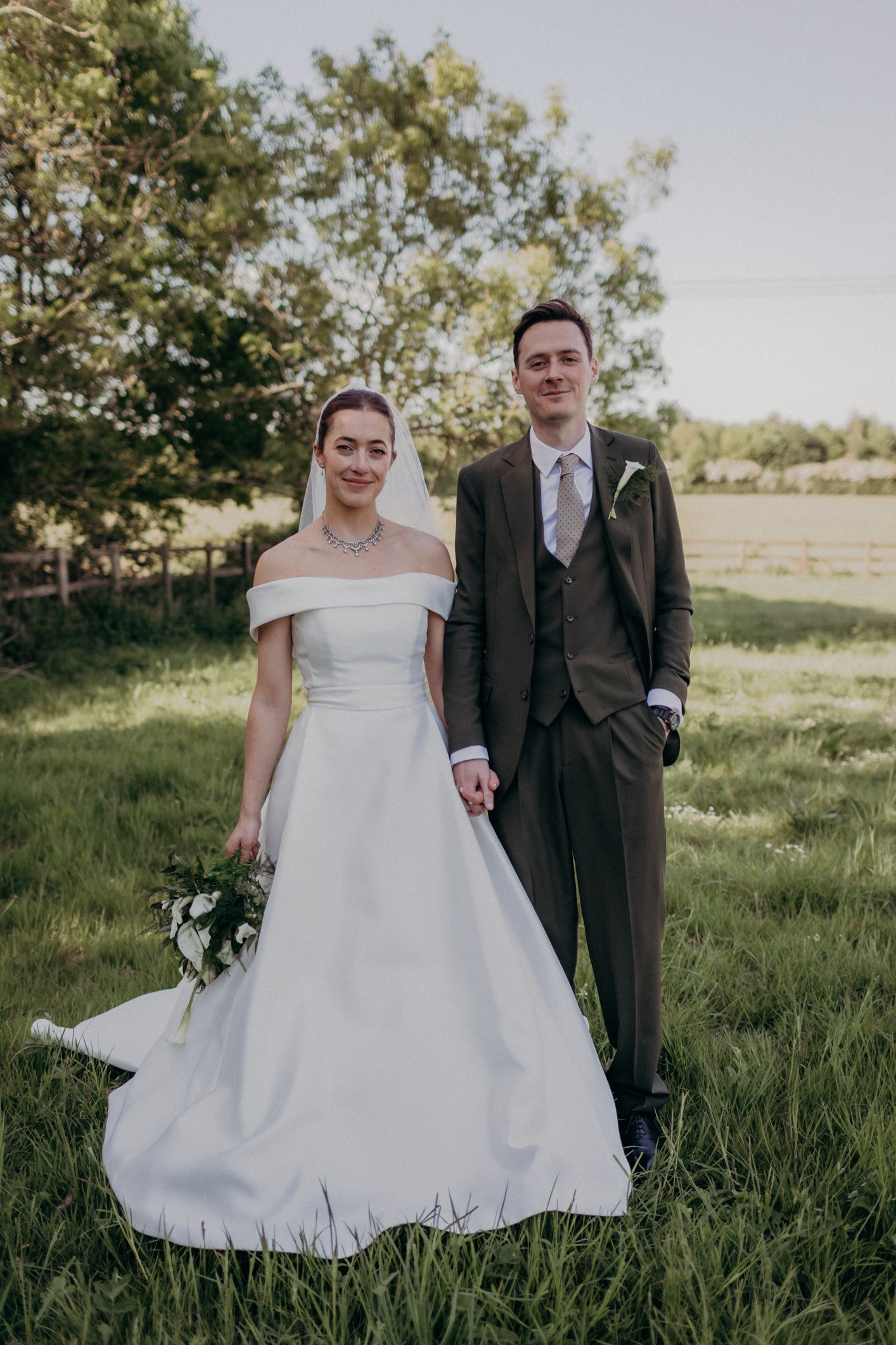 Off the shoulder Mikado A Line dress with Bardot neckline. Incredibly flattering with chest support and corset style back to cinch you in! I loved wearing it and really felt like a 'bride' in it. Offers accepted. I bought this dress as a size 14 and had it altered to fit my measurements. I am chest size 32E with a size 10 waist, and it was hemmed to fit my height of 169cm with low heels.