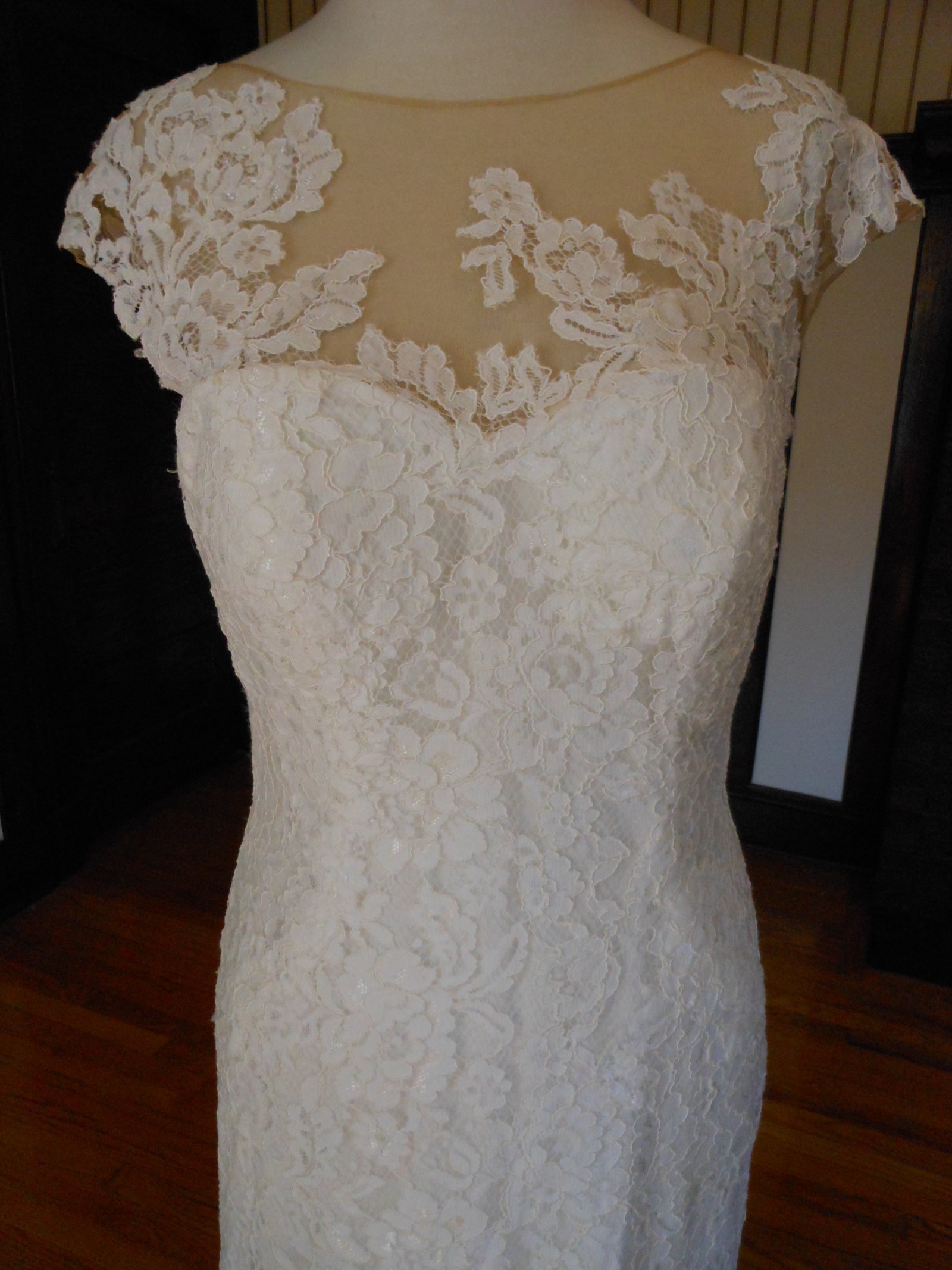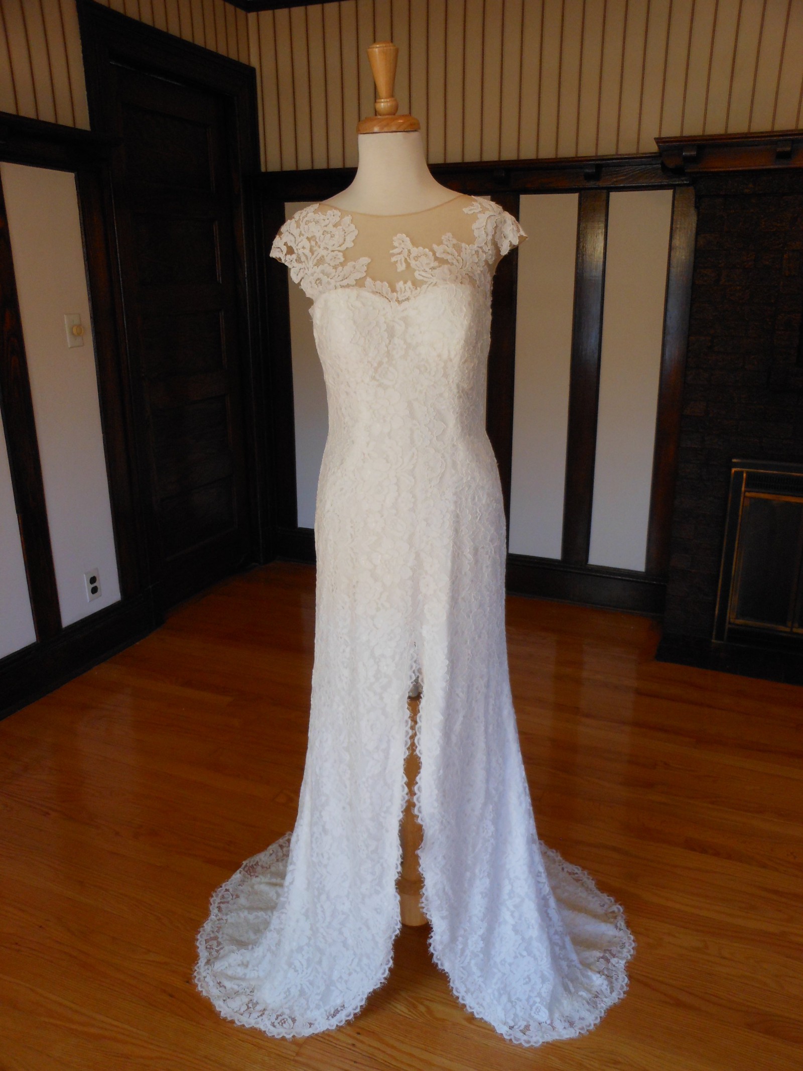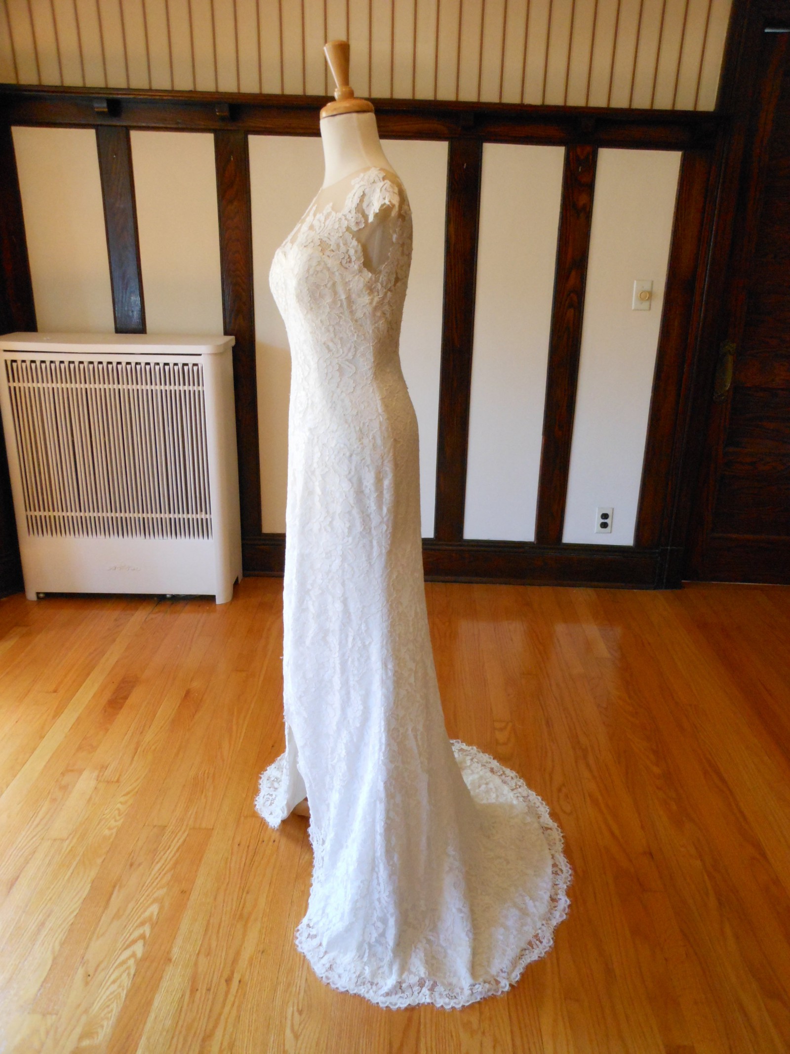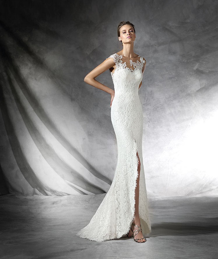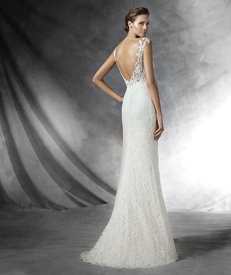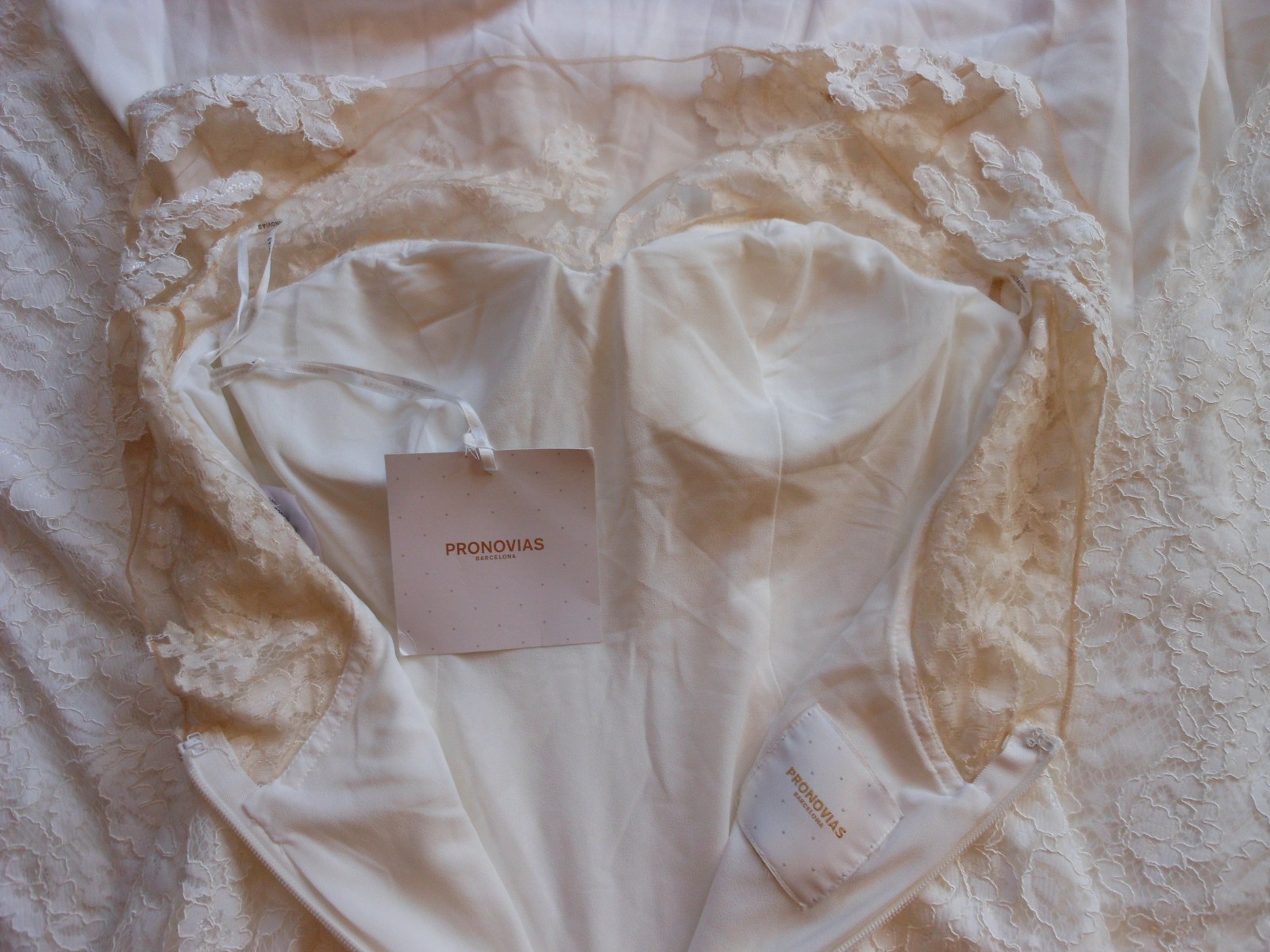 This is an Authentic PRONOVIAS Bridal Wedding Dress Gown. The name of the dress is Preta. It has a gorgeous mermaid style with a fabulous chapel train. The entire dress is embellished with exquisite floral lace and has sheer illusion overlay adorned with lace appliques. It has deep V at the back. This dress is brand new in great condition with the original label and tags. It was never worn.