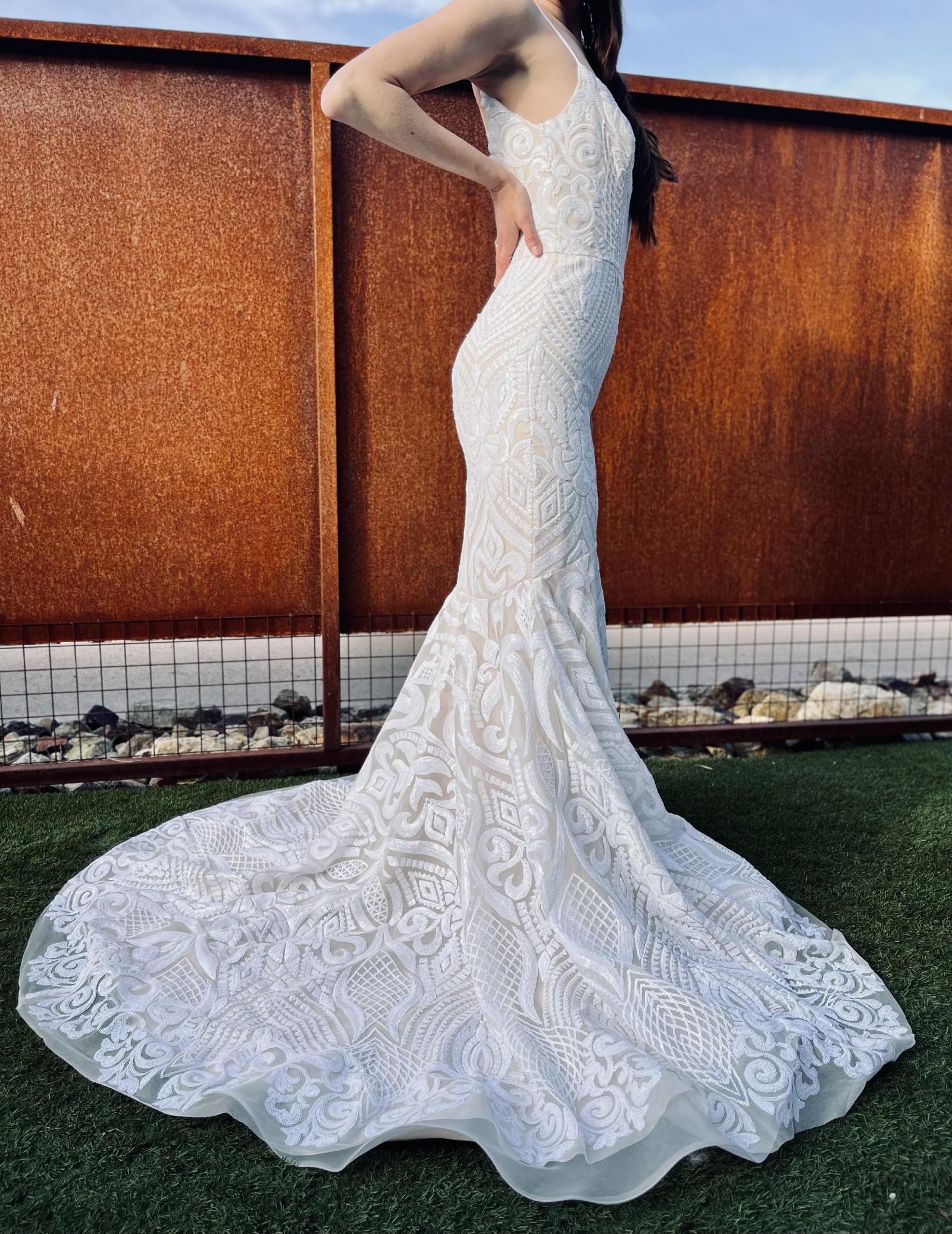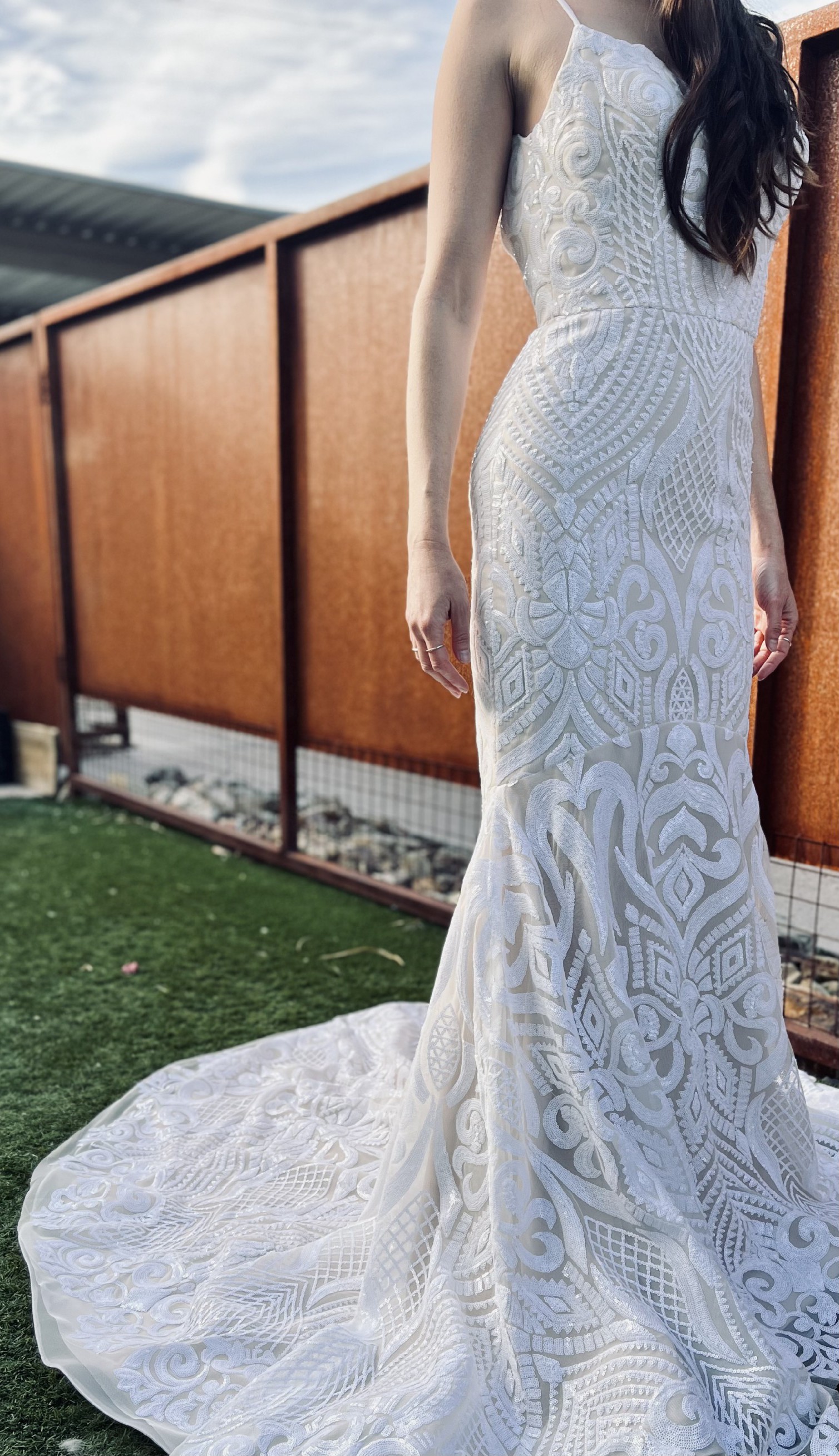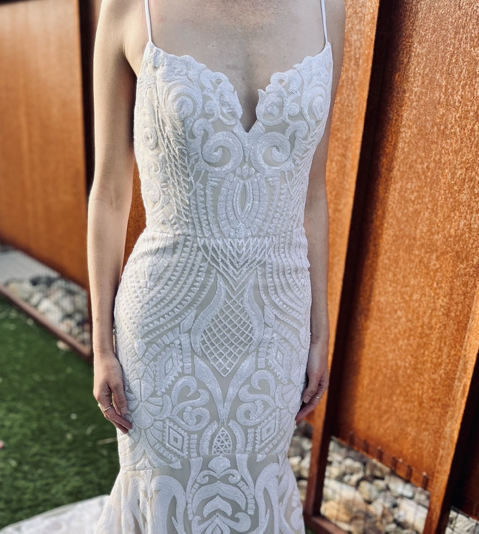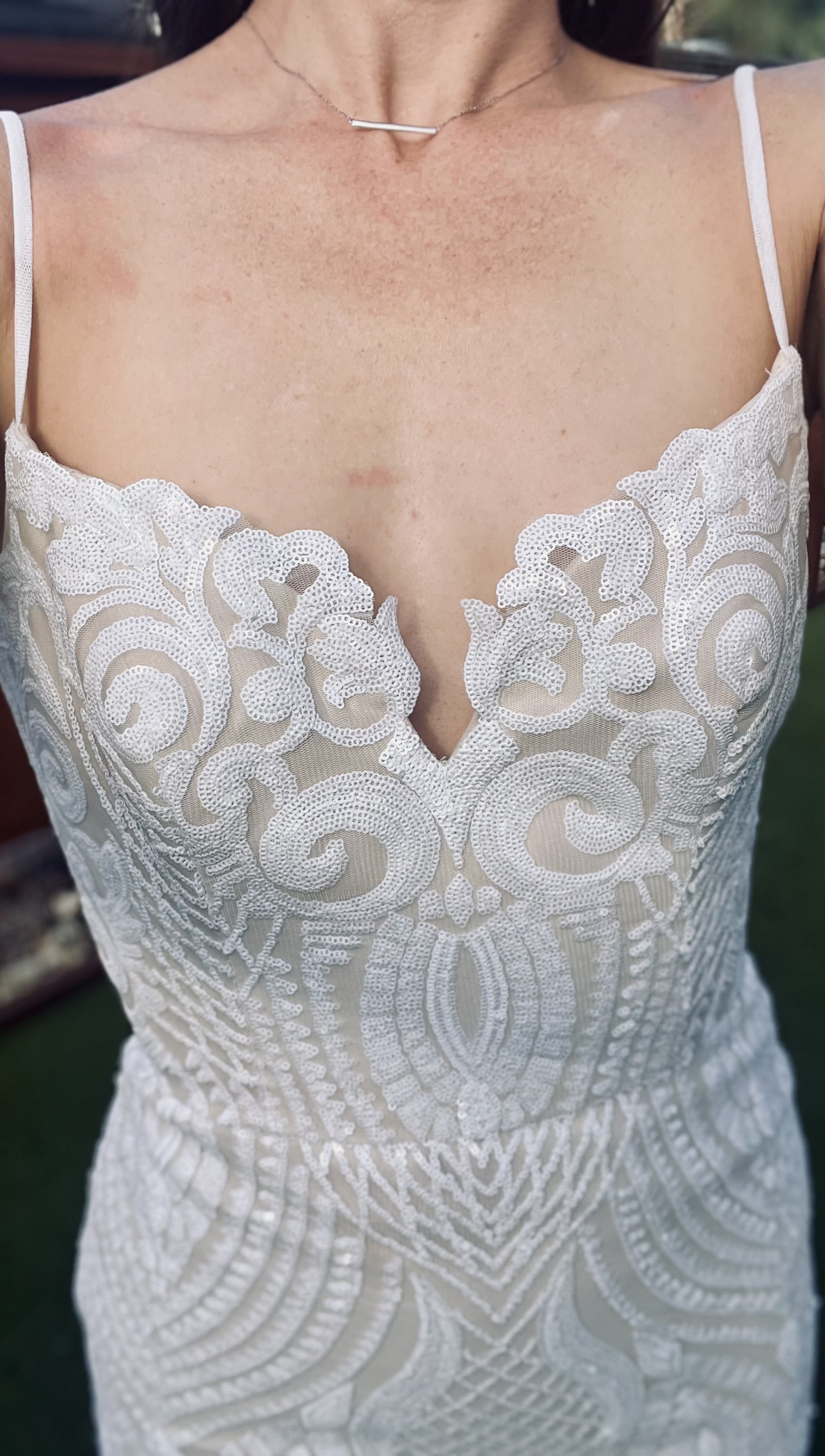 If you have any questions and would like me to take any specific measurements of the dress, please let me know and I will be happy to assist!