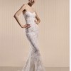 Cerelise is the epitome of elegance and sophistication. Part of the Pronovias x Elisabetta Franchi collection, this timeless mermaid gown is composed of ivory lace gently wrapping a light beige tulle underlay, with soft blush tones. The strapless sweetheart neckline and beautiful train enhance the figure with classic romance.