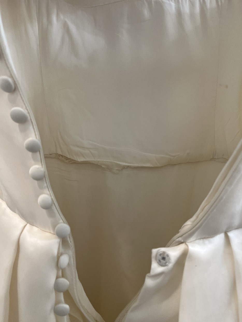 This dress is nearly perfect, with only small imperfections in the lining inside the dress (see last photo).