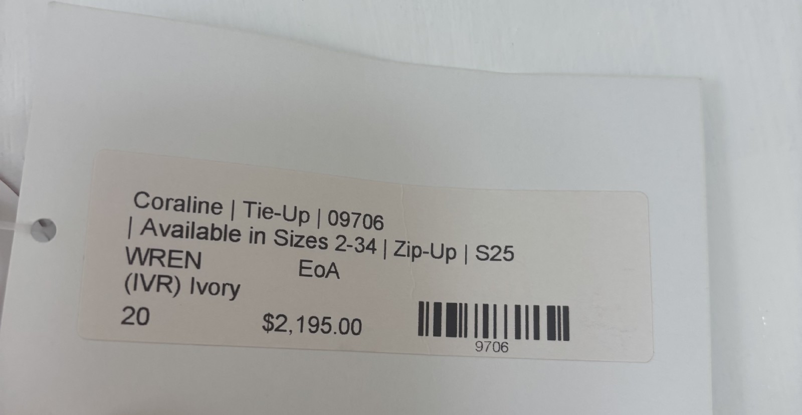 At size 20, this dress is designed to flatter and embrace the beauty of all brides, ensuring you feel radiant as you celebrate love and commitment. The Coralline dress is not just a gown; it's a statement piece that will make your wedding day unforgettable. Step into your fairytale with this breathtaking creation.