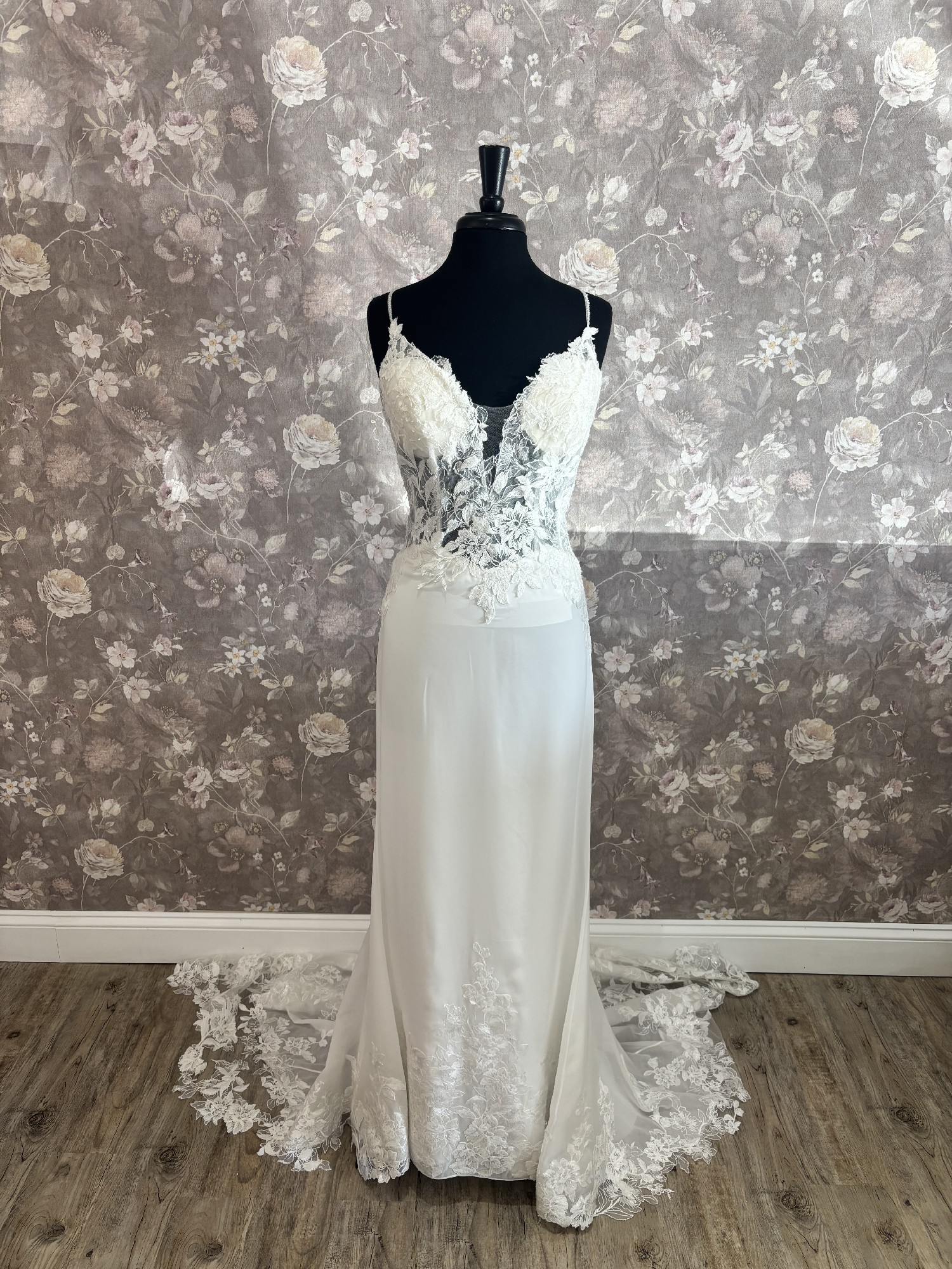 Our gowns have not been worn for a wedding, though they may have been tried on during appointments. While we maintain high standards for our samples, small imperfections—like loose buttons, missing beads, or zipper issues—can happen. These easy-to-fix details with the help of a seamstress mean amazing discounts! Interested in this gown? Chat or email us anytime for more info or extra photos.