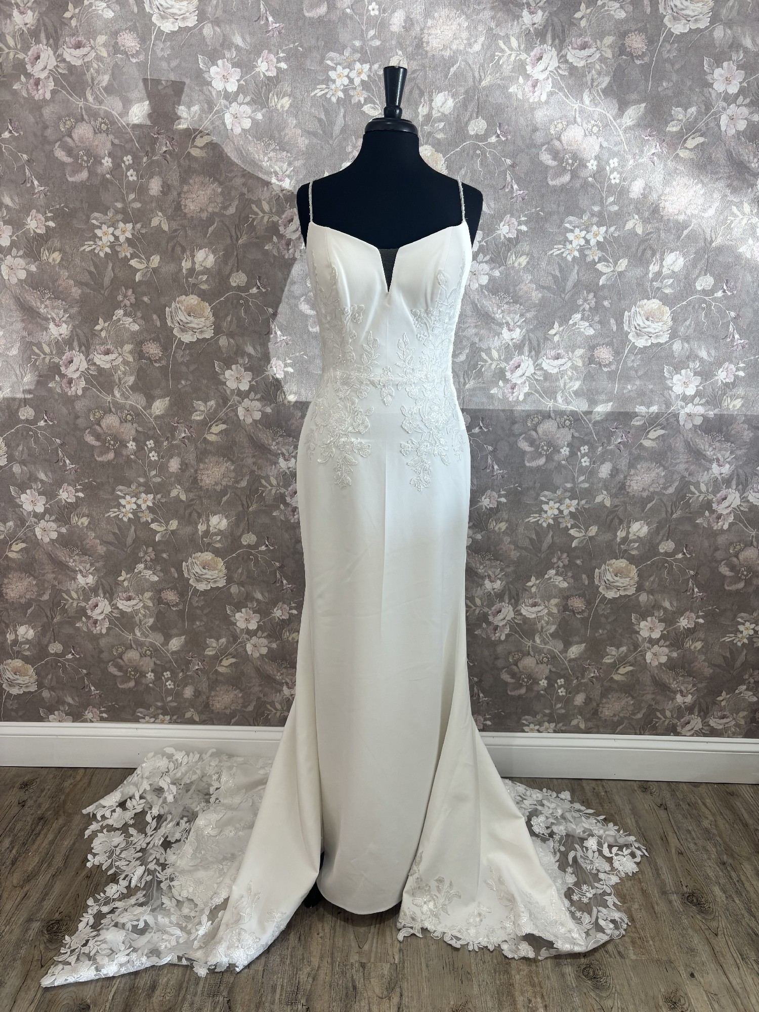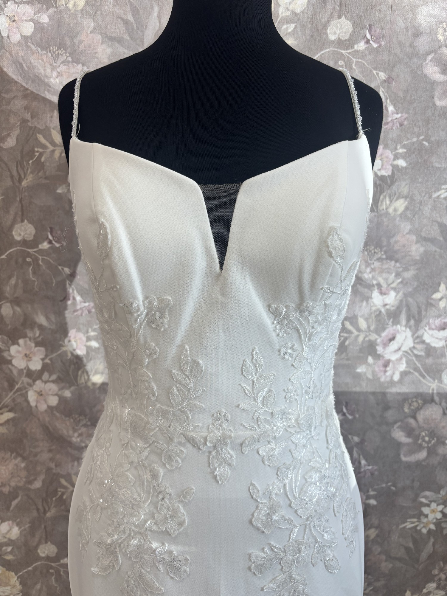 Our gowns have not been worn for a wedding, though they may have been tried on during appointments. While we maintain high standards for our samples, small imperfections—like loose buttons, missing beads, or zipper issues—can happen. These easy-to-fix details with the help of a seamstress mean amazing discounts! Interested in this gown? Chat or email us anytime for more info or extra photos.
