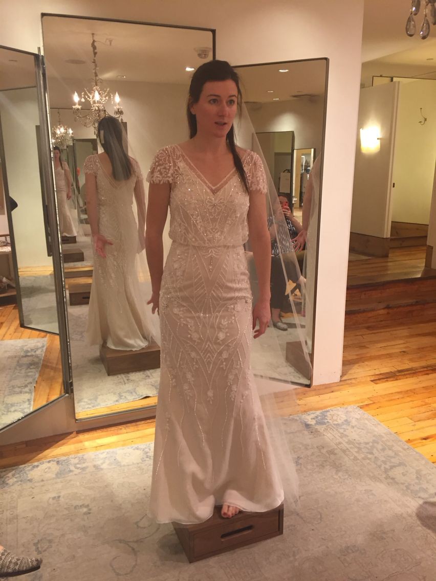 US Size 14. Brand new, with tags. May have been tried on in store, but appears to be in excellent condition. Few loose threads on the dress. It does come with a little satchel of extra beads if needed. Retail price: $1,000.
