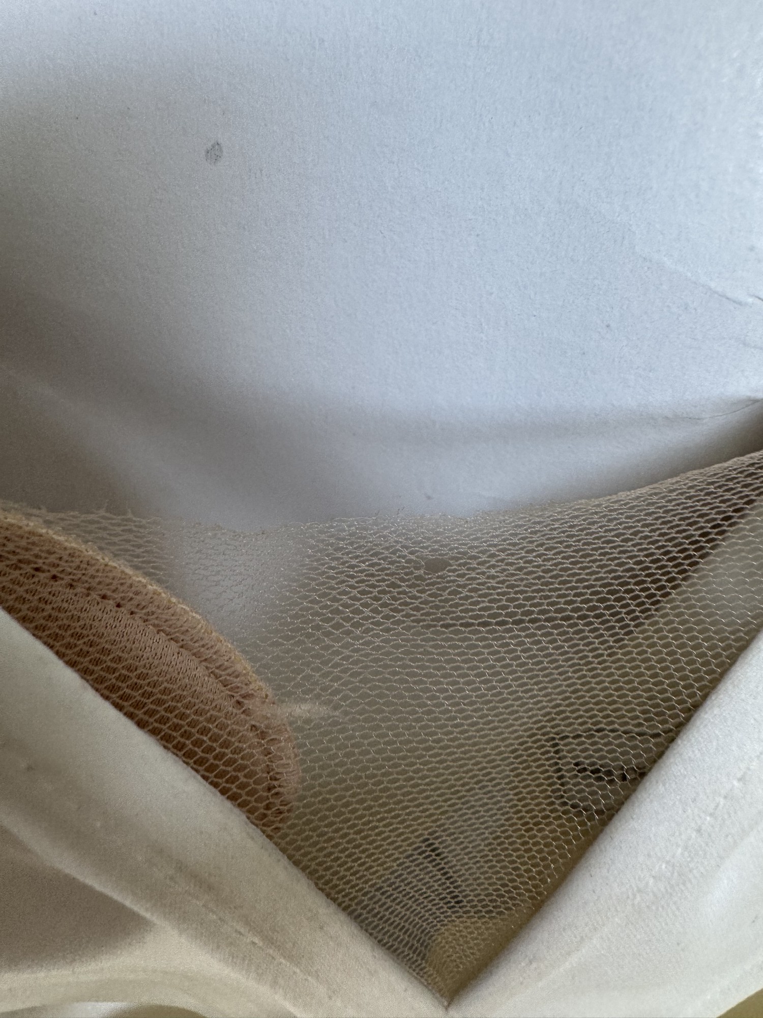 - Tiny tear that’s hardly visible in the mesh between-boob area which can be easily replaced when you do alterations if necessary