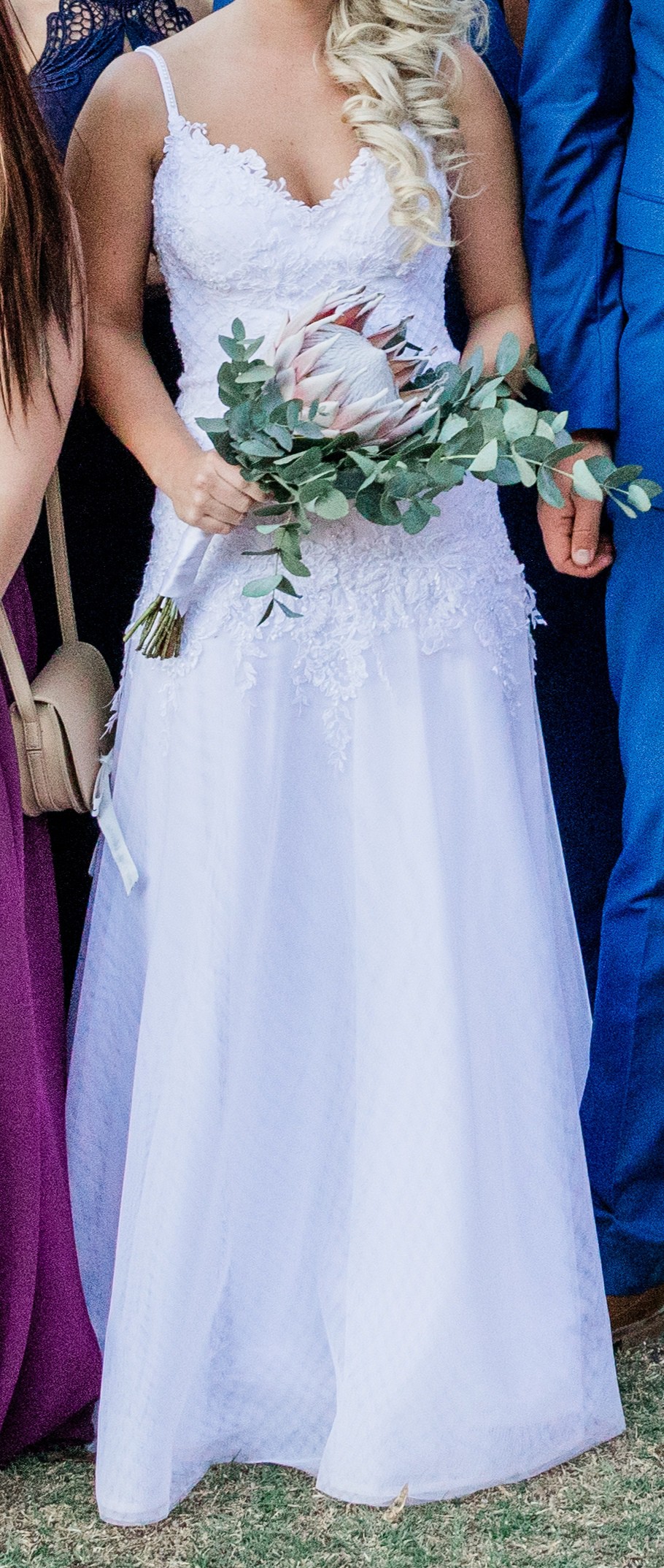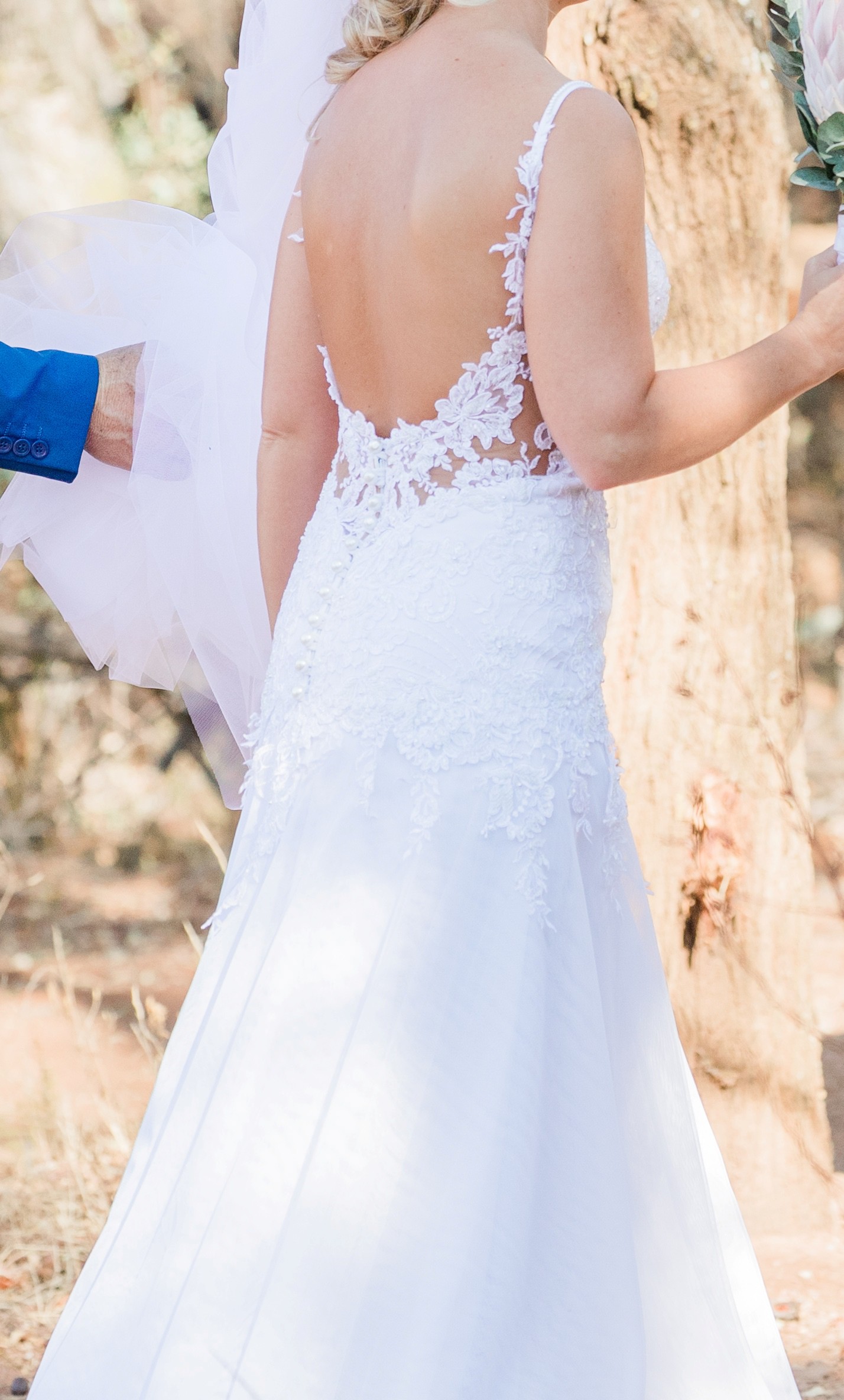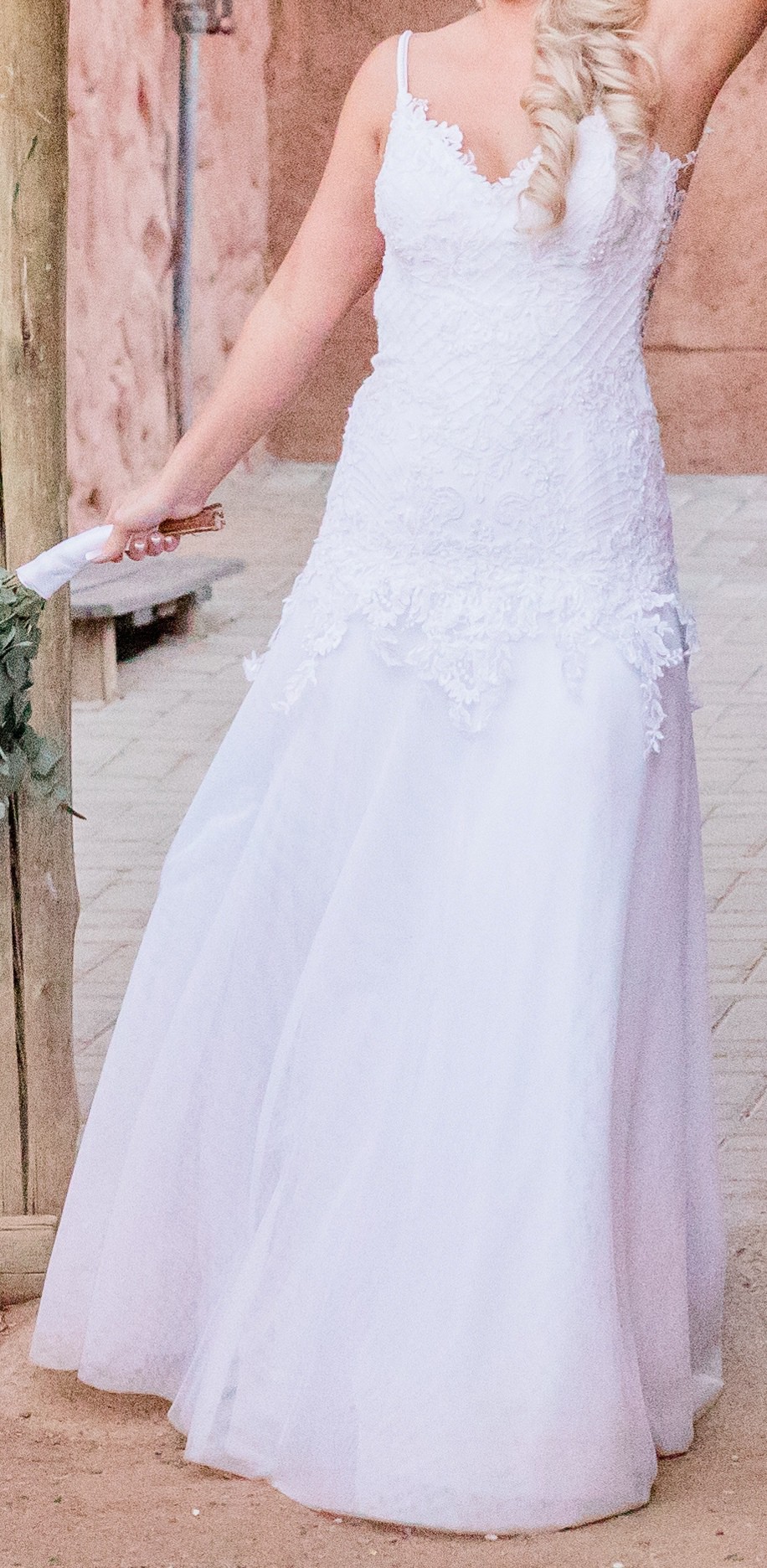 White Anel Botha Couture dress. Size 32. Bride length 1.54m. The dress was made to fit the bride. This is really a very beautiful and comfortable dress. Exceptional lace.