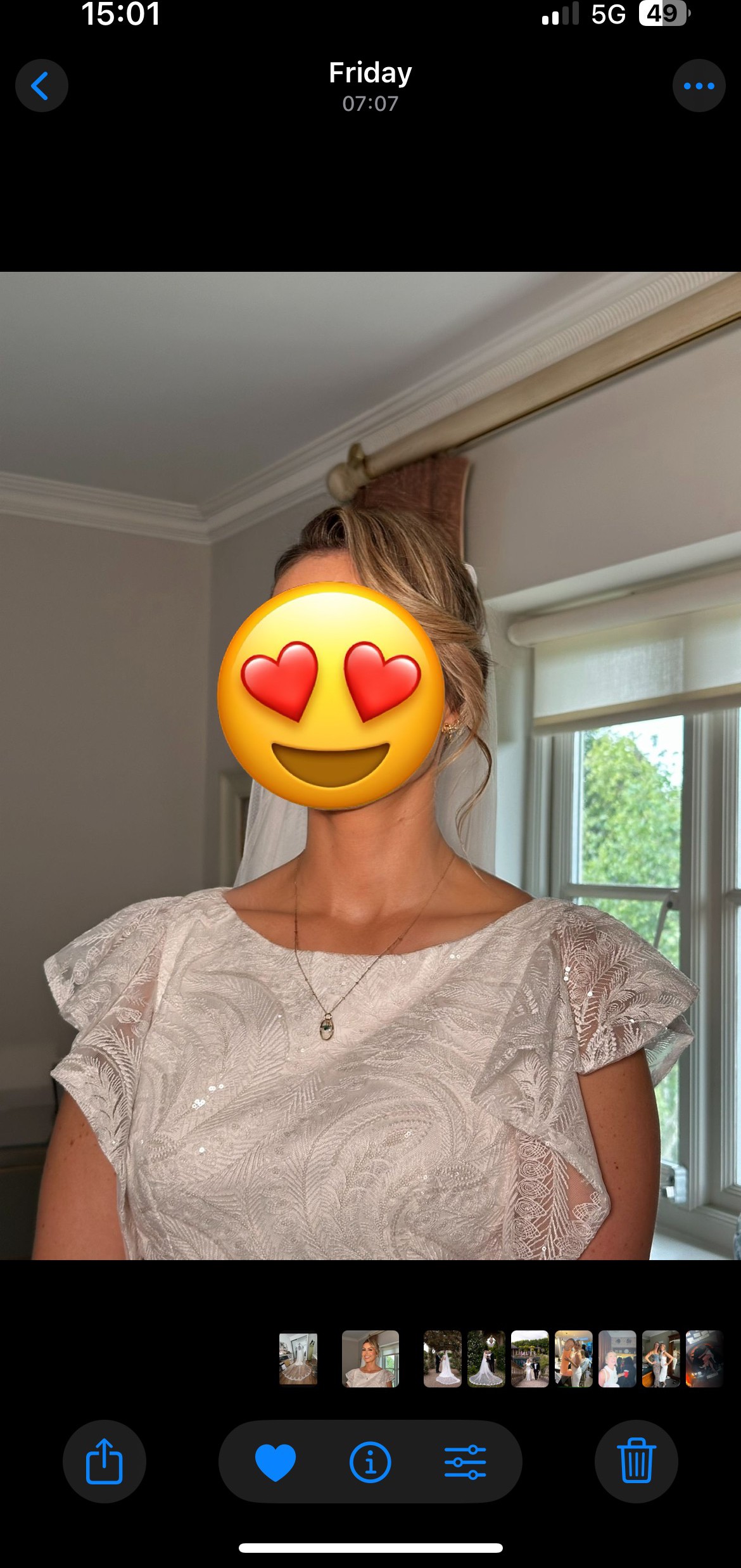 I also have a scallop long veil that has matching fabric hand sewn at the bottom which I will include.