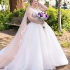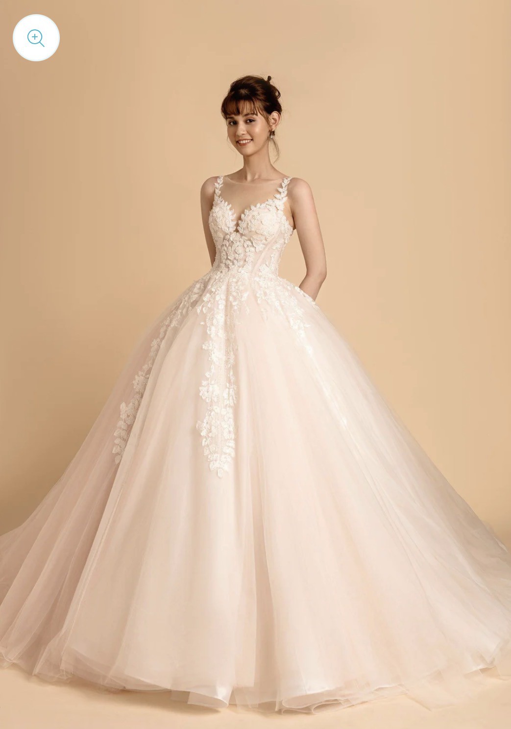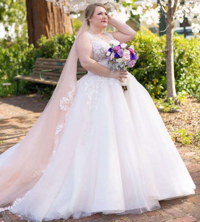 Blush ball gown features a beaded sweetheart neckline, keyhole back, and layered tulle skirt with luxe embellishments from top to hem. I wore it with a hoop skirt, but you can wear it with a petticoat instead. Comes with a matching blush veil (in pictures).