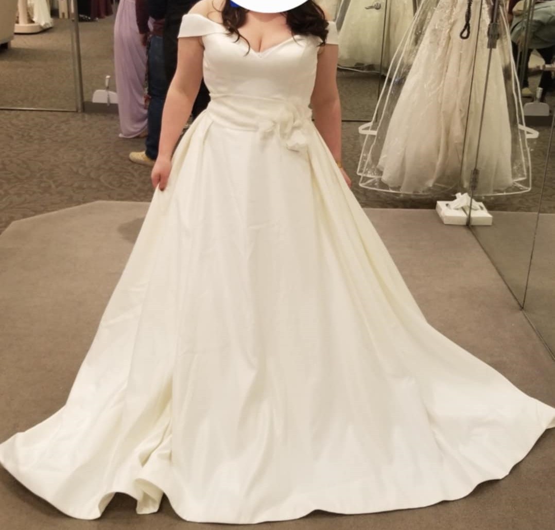 David's Bridal, Off the Shoulder Satin Ball Gown Wedding Dress STY