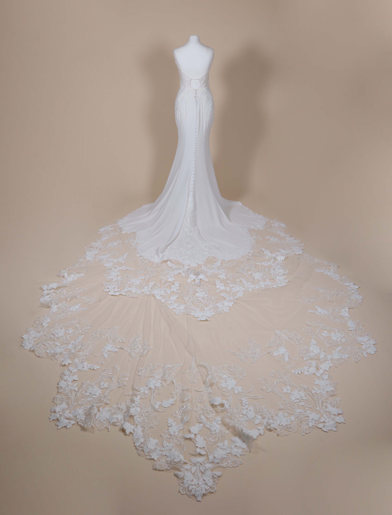long train is also reimagined as a detachable extension — perfect for breathtaking photos and a show‑stopping