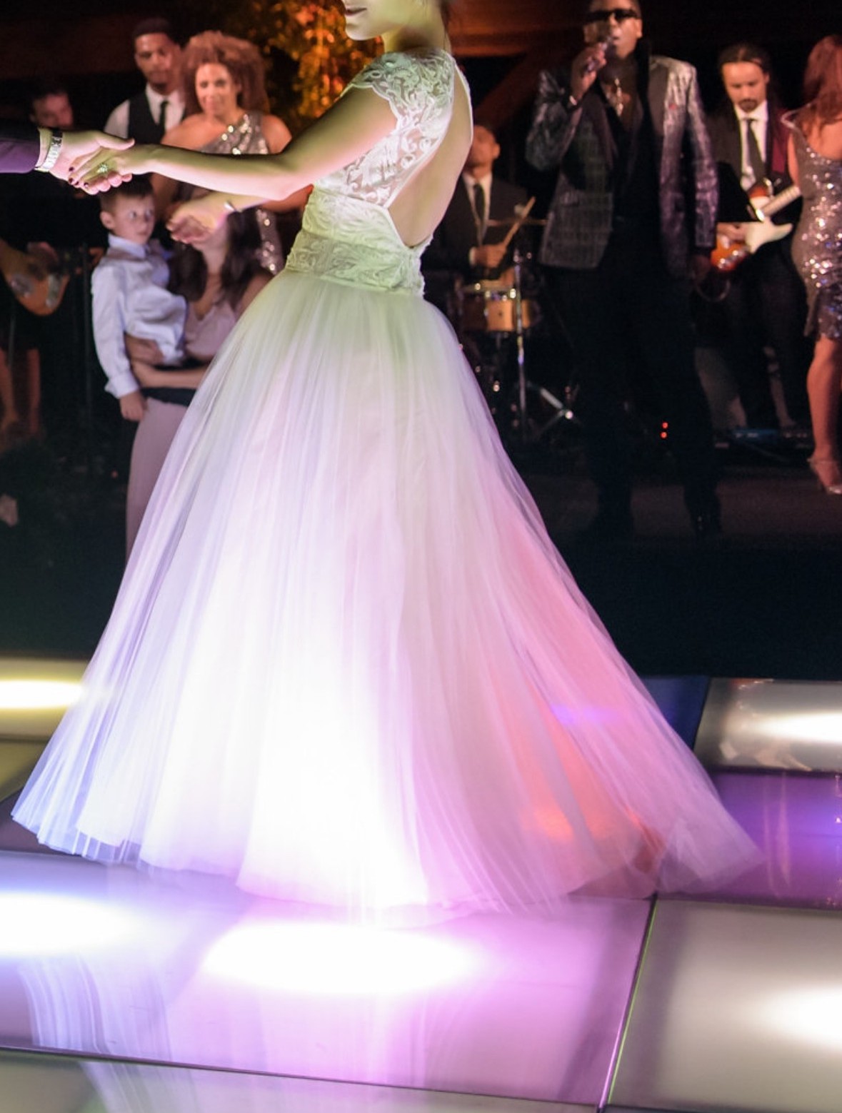 - Sleeves altered from long to cap sleeves