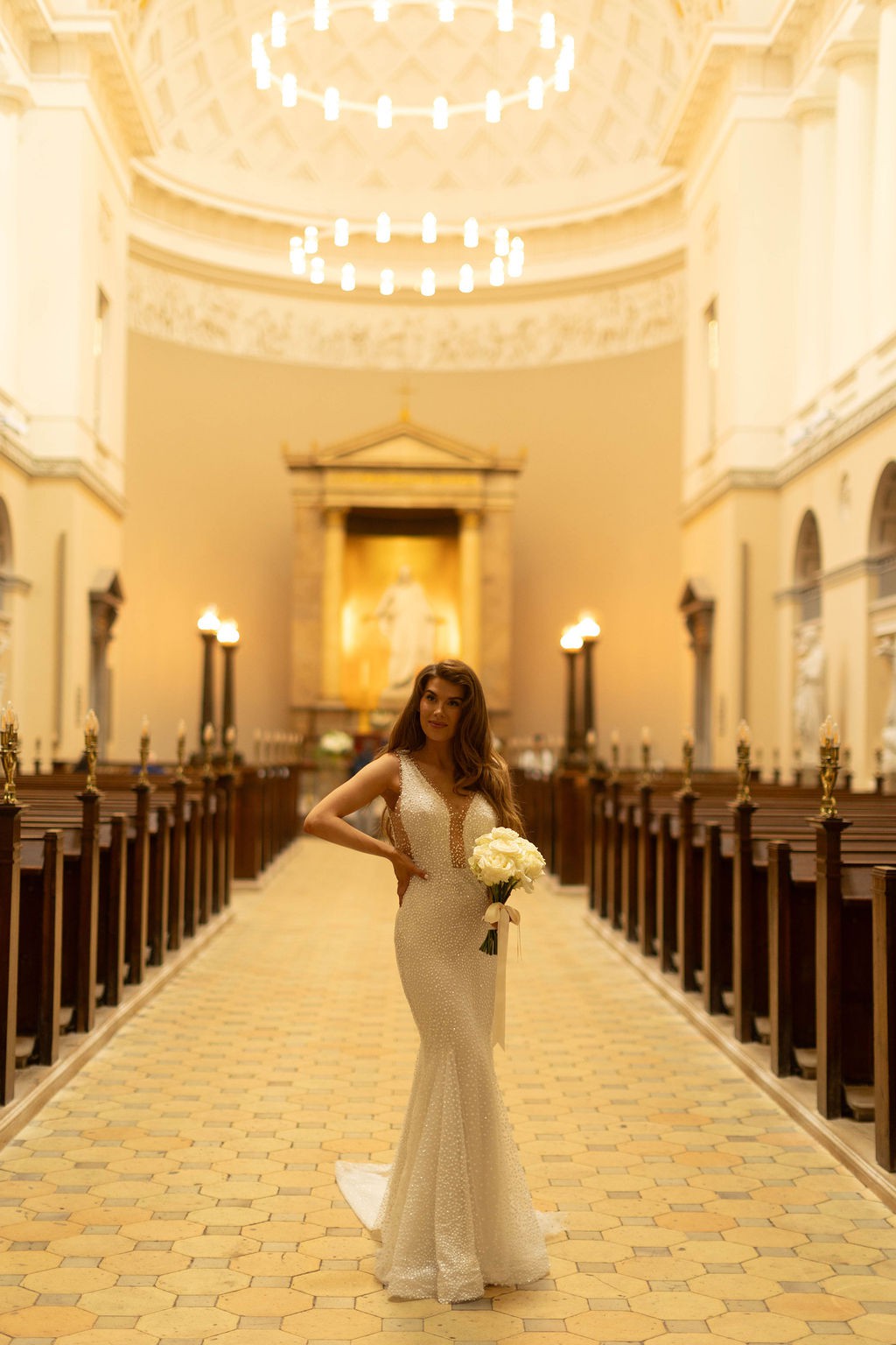 This gown is ideal for a bride looking for a statement piece that feels both ethereal and fashion-forward, perfect for elegant weddings, cathedrals, or sunset ceremonies under the stars.