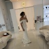 - Optional off-the-shoulder draped straps were added for the ceremony (can be worn or not worn)