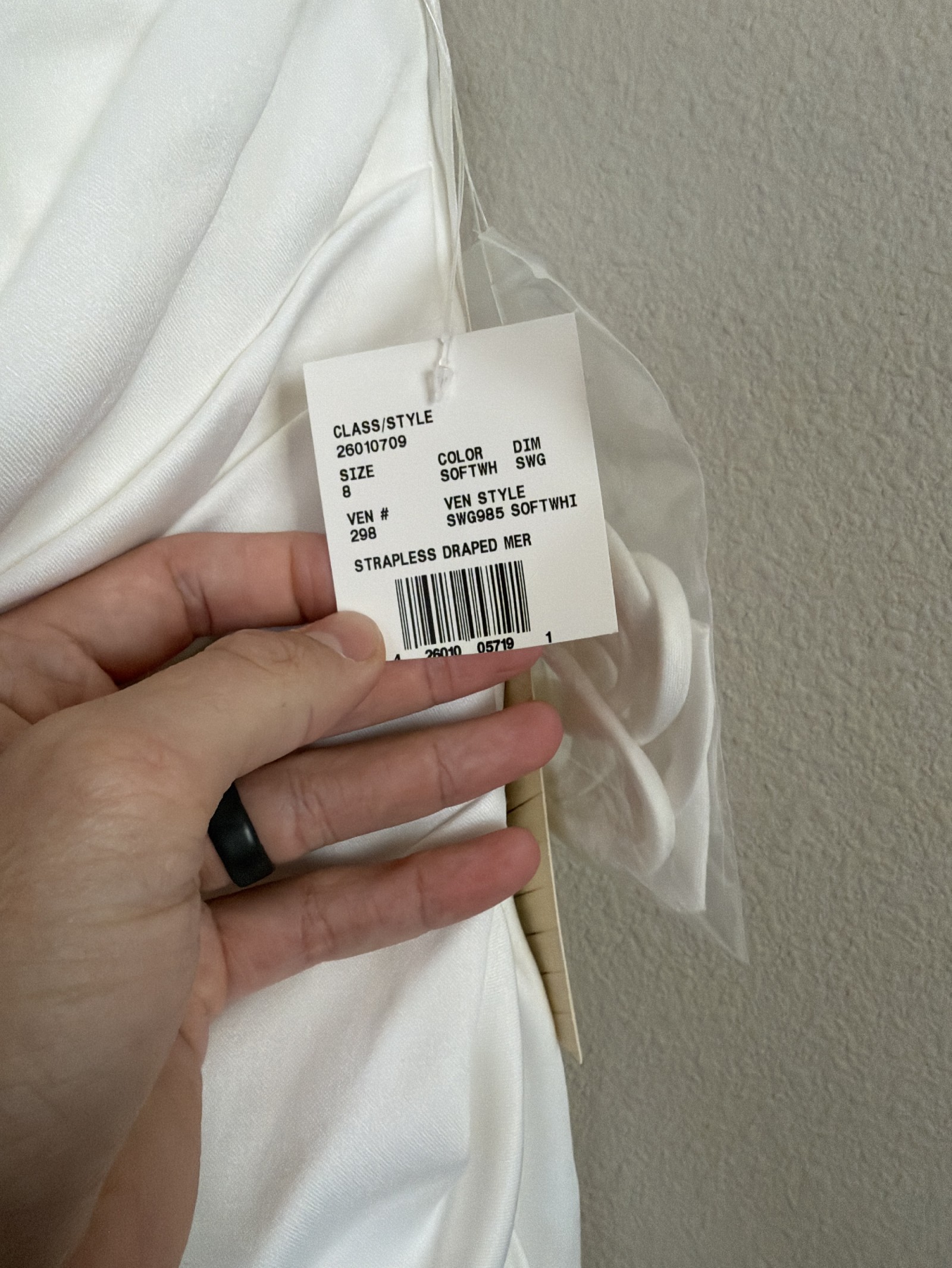 Brand New Galina Signature Wedding Dress (SWG985) + Cathedral Veil – re NEVER WORN This is a stunning Galina Signature strapless draped satin mermaid wedding dress (style SWG985) from David’s Bridal, paired with a matching Oleg Cassini cathedral-length floral appliqué veil (V10030). The dress features elegant draping that contours beautifully through the bodice and hips, creating a timeless and flattering silhouette. The structured satin gives it a clean, sophisticated look, while the dramatic train adds a true bridal moment. The cathedral veil is detailed with soft floral lace appliqué, perfectly complementing the gown for a complete, high-end bridal look. ✨ Dress Details: • Condition: Brand new, NEVER WORN • Alterations: None • Designer: Galina Signature (David’s Bridal) • Style: SWG985 • Color: Soft White • Silhouette: Strapless mermaid • Includes: Matching cathedral veil (V10030) 🌿 Veil Details: • Cathedral length for a dramatic, elegant look • Sheer tulle with lace edge and floral appliqué detailing • Delicate embroidered floral design with subtle sequin accents • Soft, romantic finish that complements the gown perfectly • Attached comb for easy placement 💲 Original retail: ~$2500+ Asking: $2,100 This is a beautiful, unworn gown ready for someone’s big day—without the wait or full retail price.