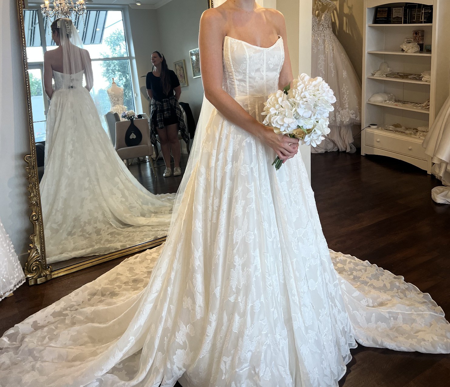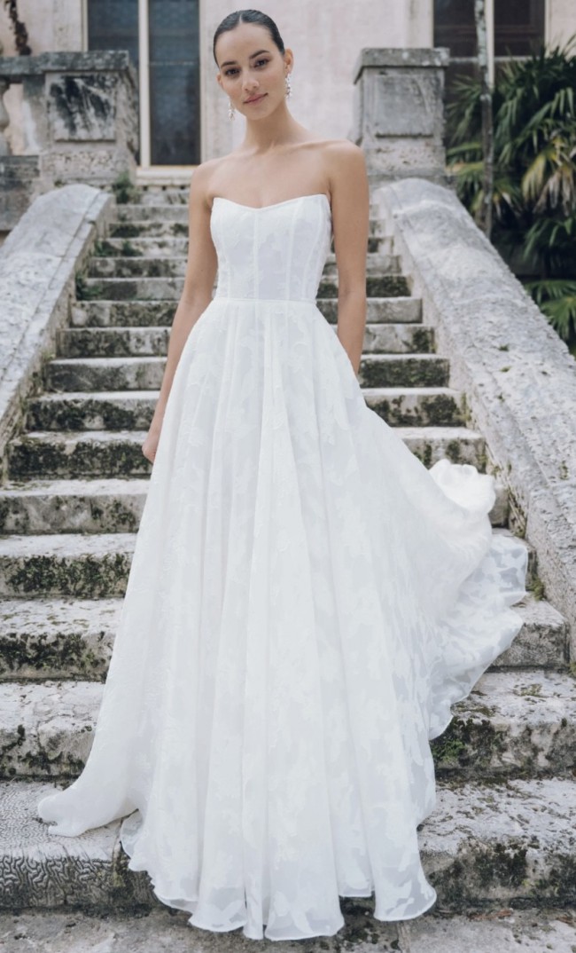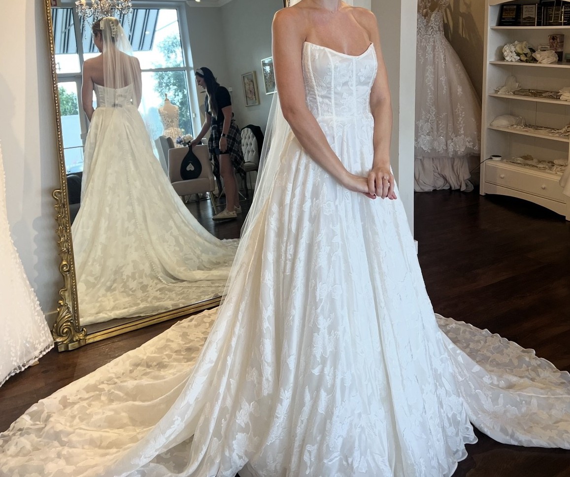 Jenny Yoo “Beau” Strapless Floral Jacquard A-Line Wedding Gown – Unaltered