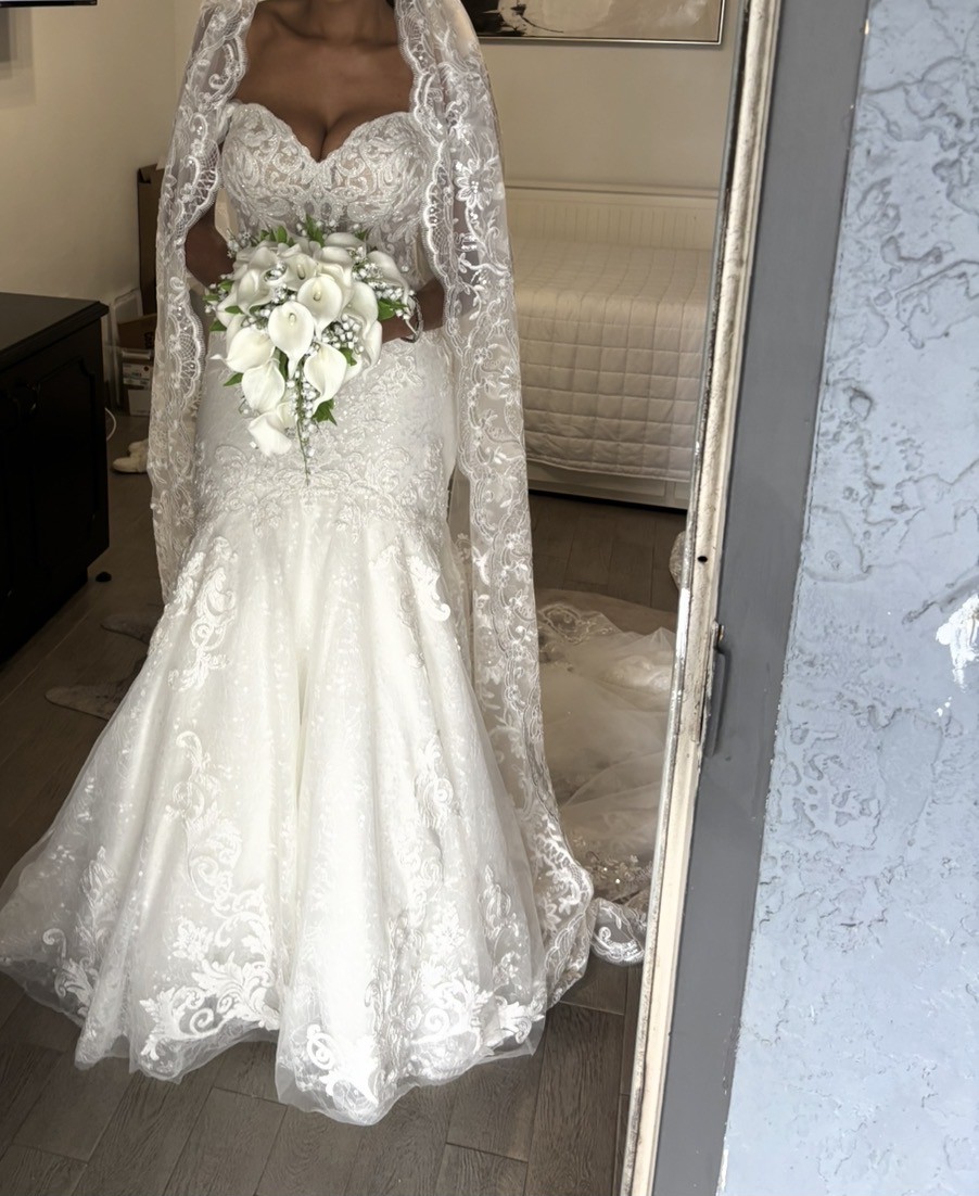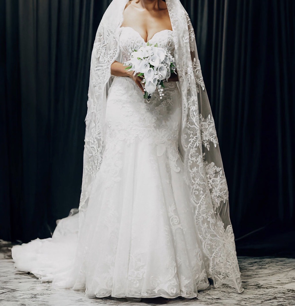 Selling this amazing Sophia Tolli dress & veil, dry-cleaned. It comes with fully removable off shoulder sleeves and spaghetti straps as an optional add-on.