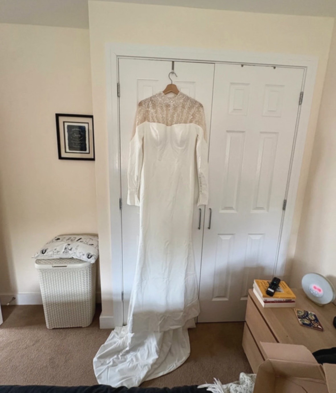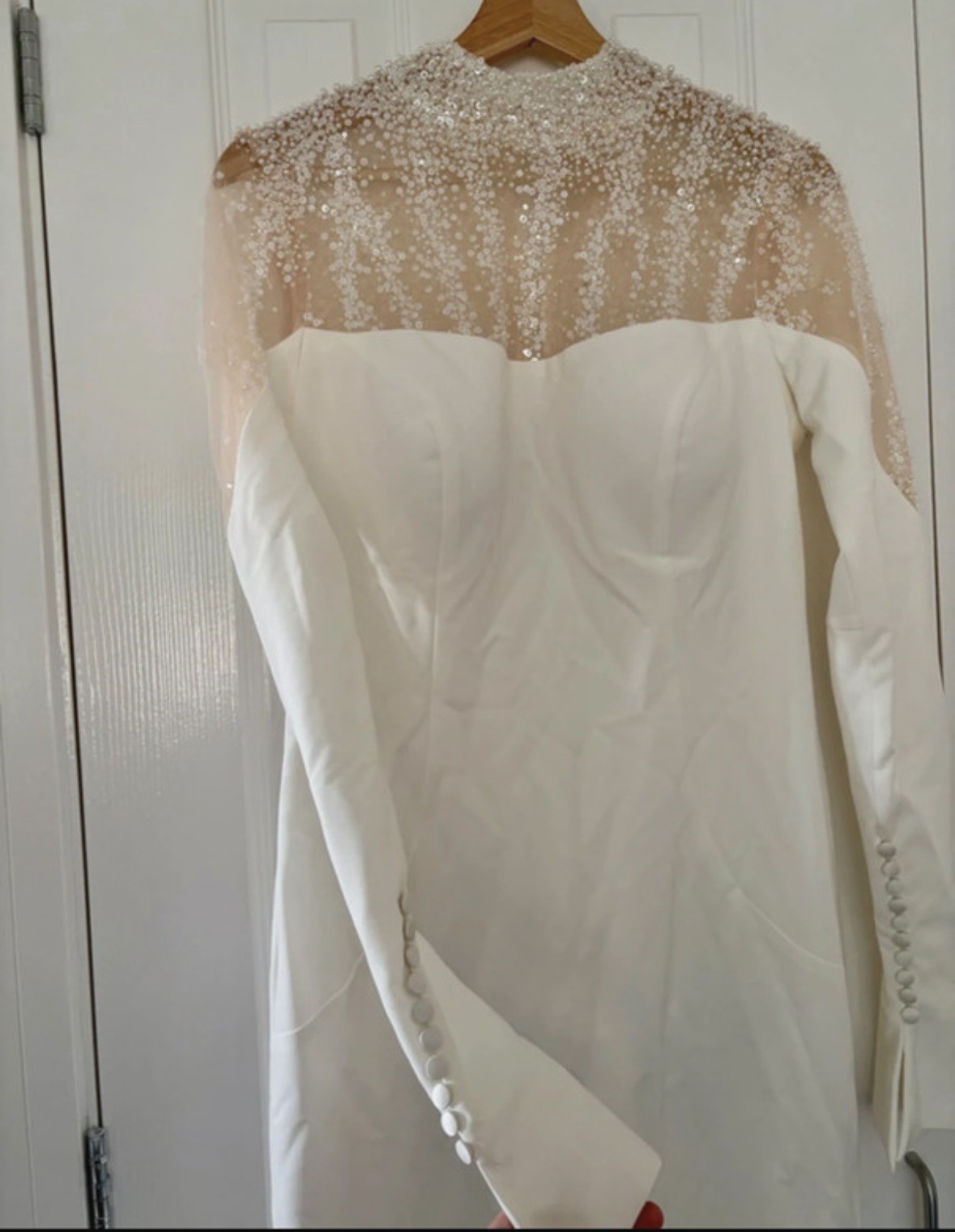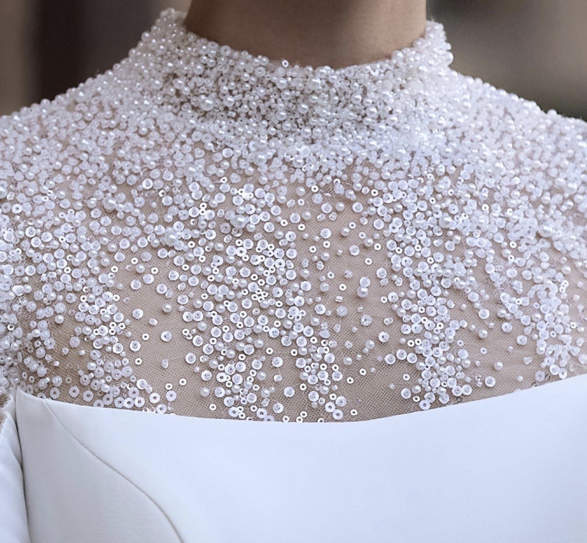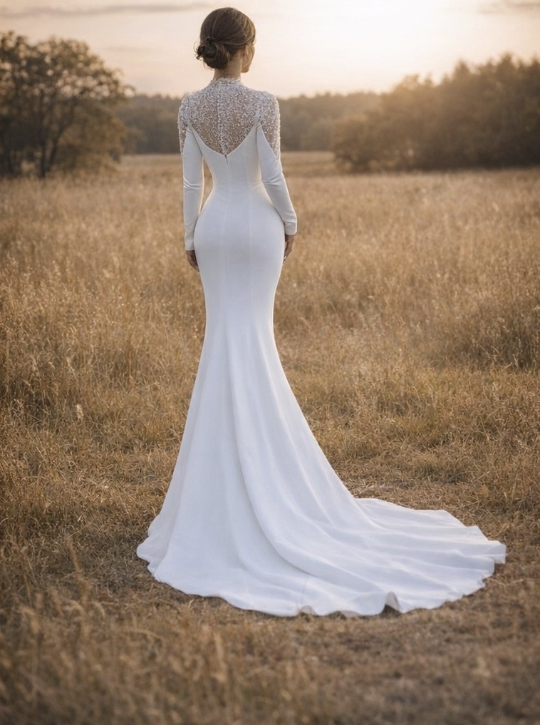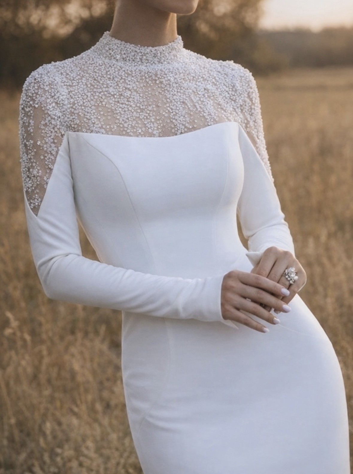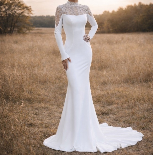 Beaded High Neck Mermaid Wedding Dress, Long Sleeved, Hand-Embroidered off Etsy.