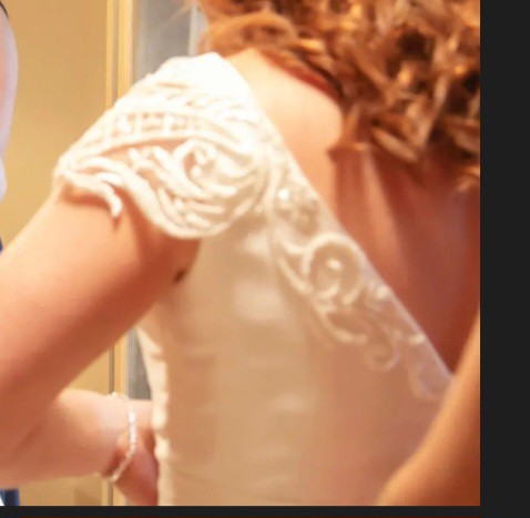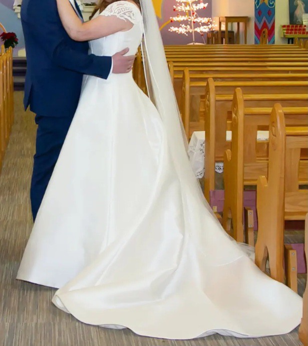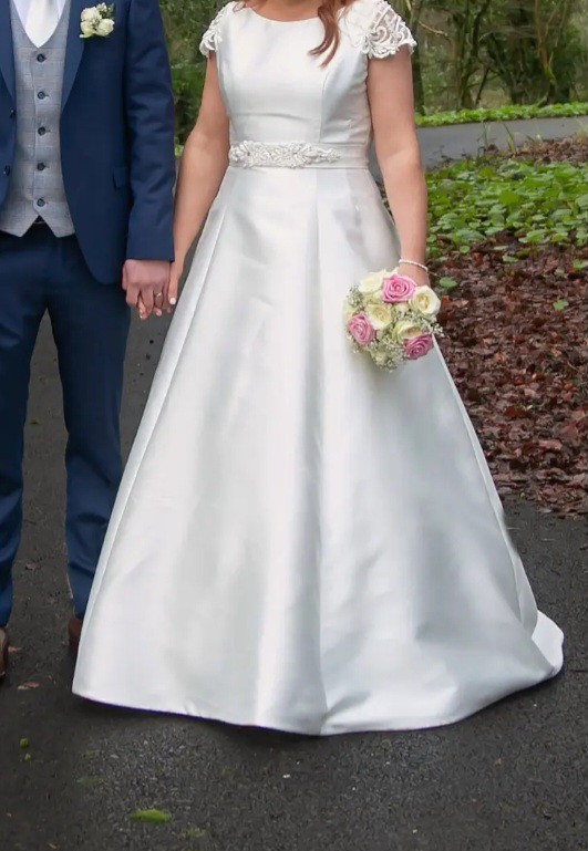 Very comfortable ballgown, authentic as the dress was completely bare to begin with. Details were then added - waist detail and capped sleeves that travel down to the zip at the back.