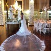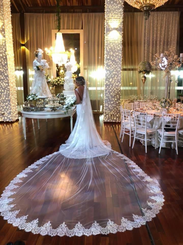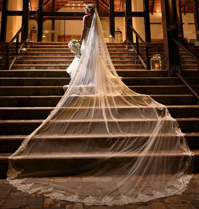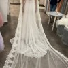 With a low back that adds a touch of allure, this dress perfectly combines sophistication with romance. Made in a size 4, it falls gracefully to the floor, creating a breathtaking silhouette that will leave your guests in awe. Paired with the beautiful cathedral veil and matching bridal headpiece, you will feel like royalty as you walk down the aisle.